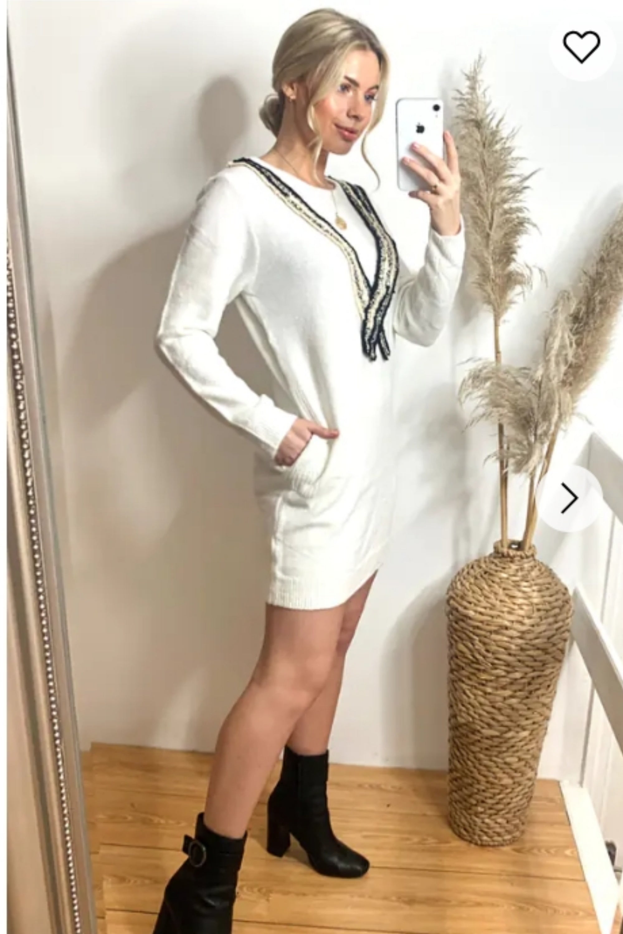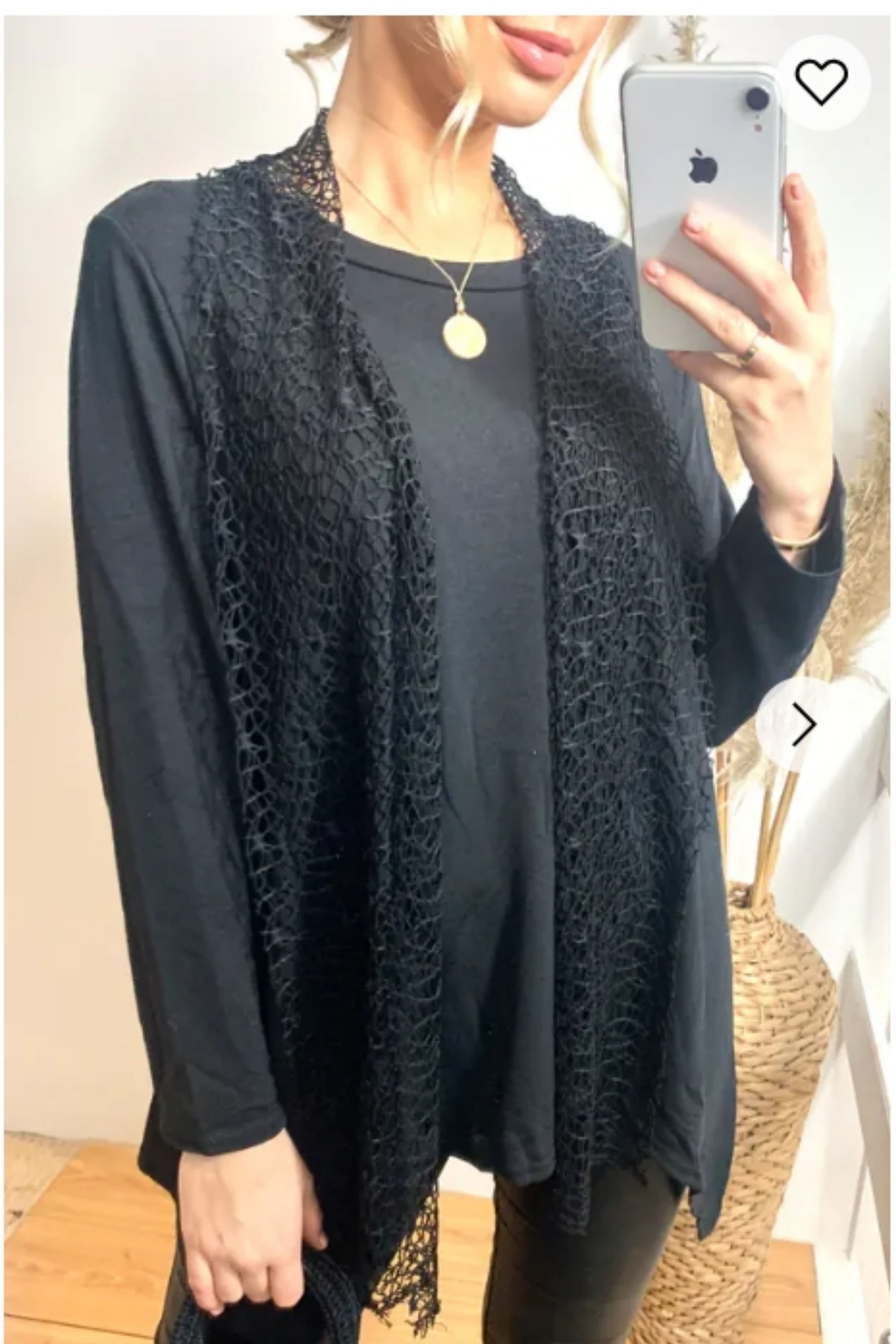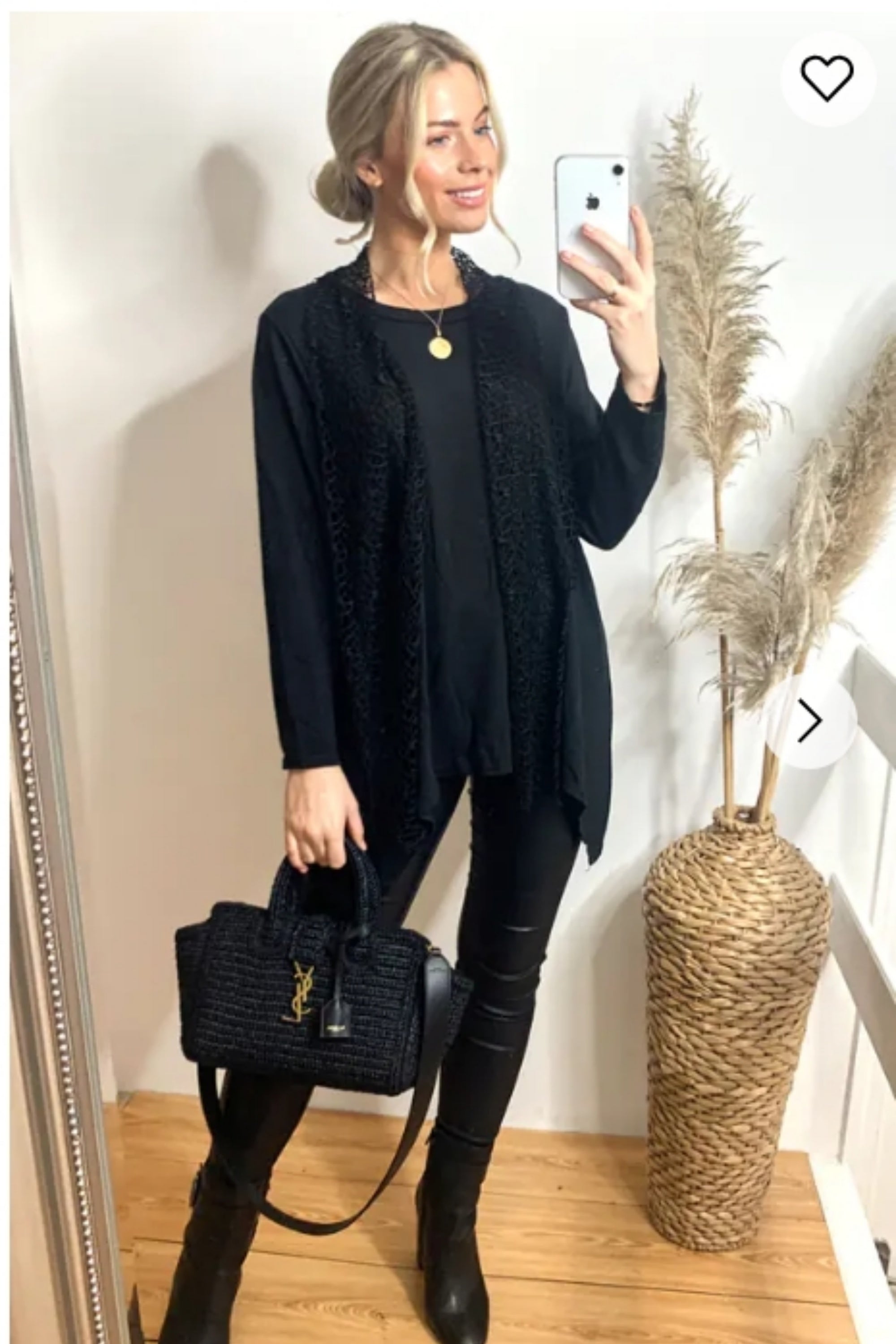 Waterfall collar Knitted cardigan with chiffon detail (White)