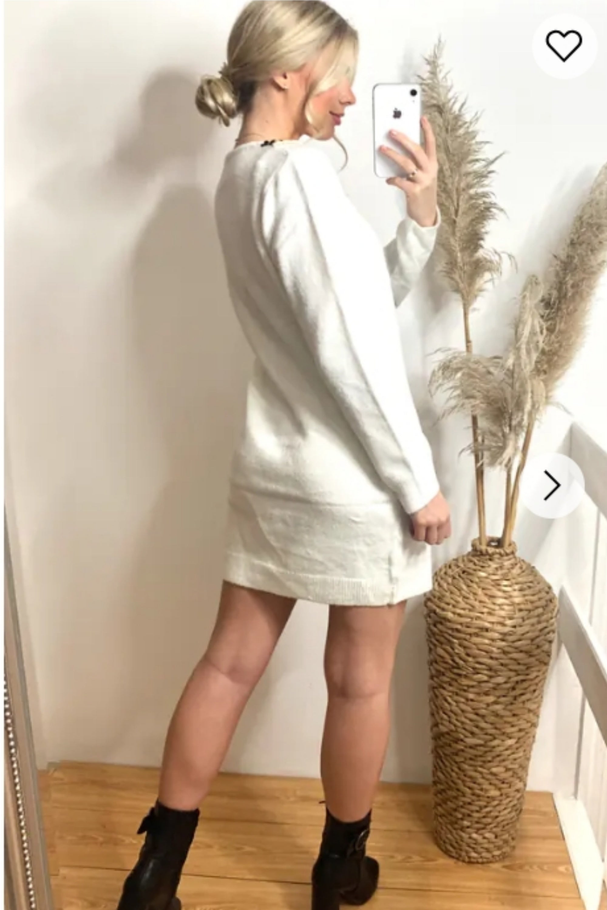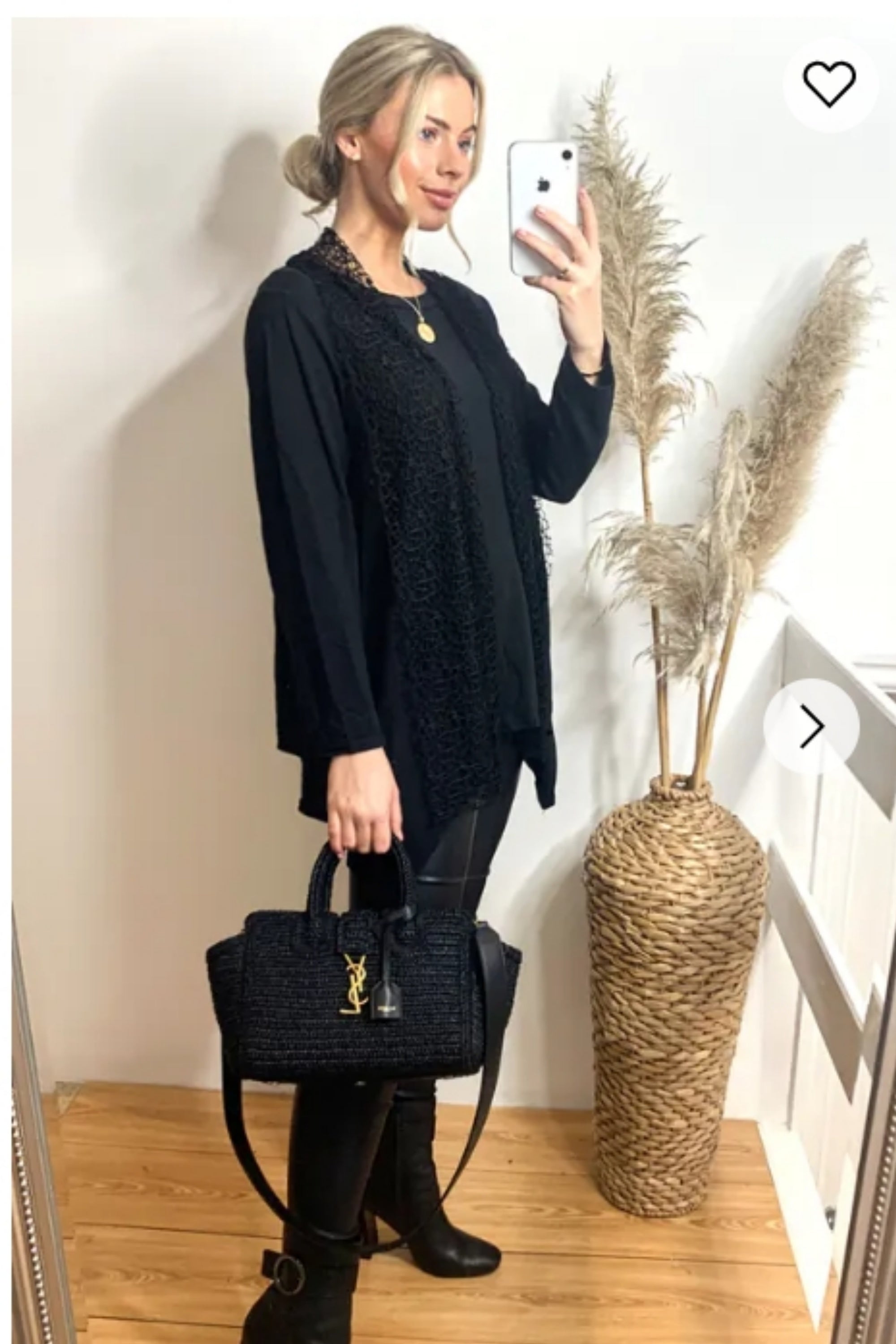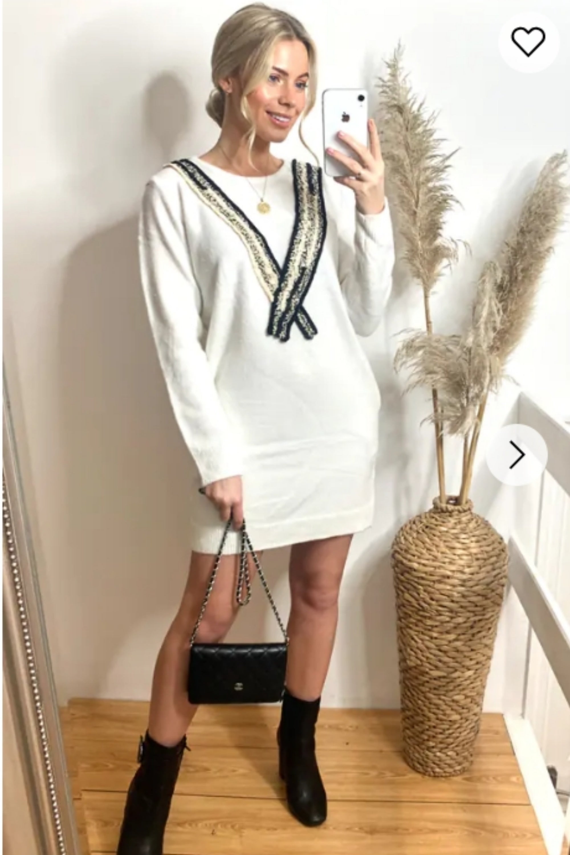 Waterfall collar Knitted cardigan with chiffon detail (White)