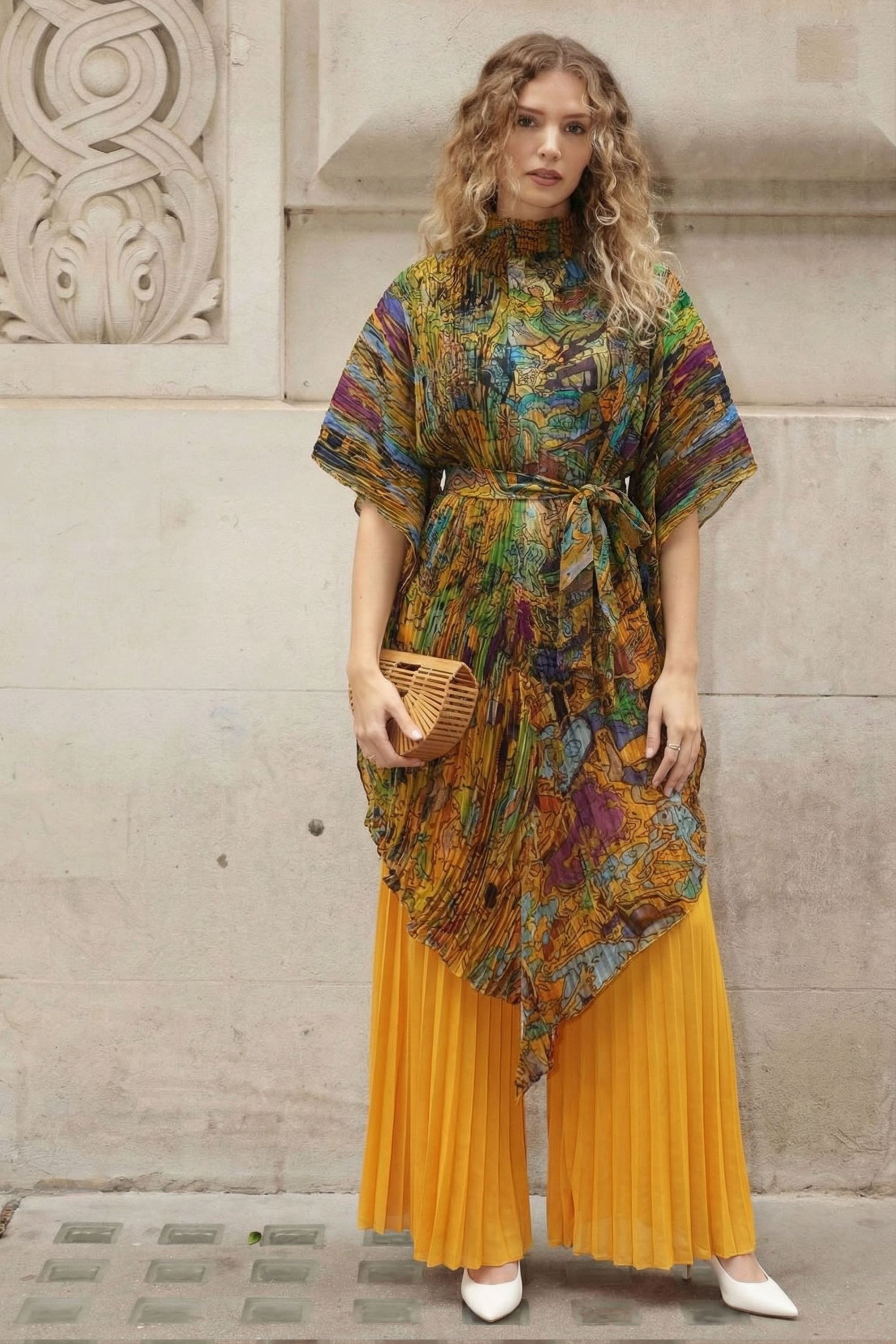 Sunset Ombre Draped Top & Pleated Trouser Co-Ord