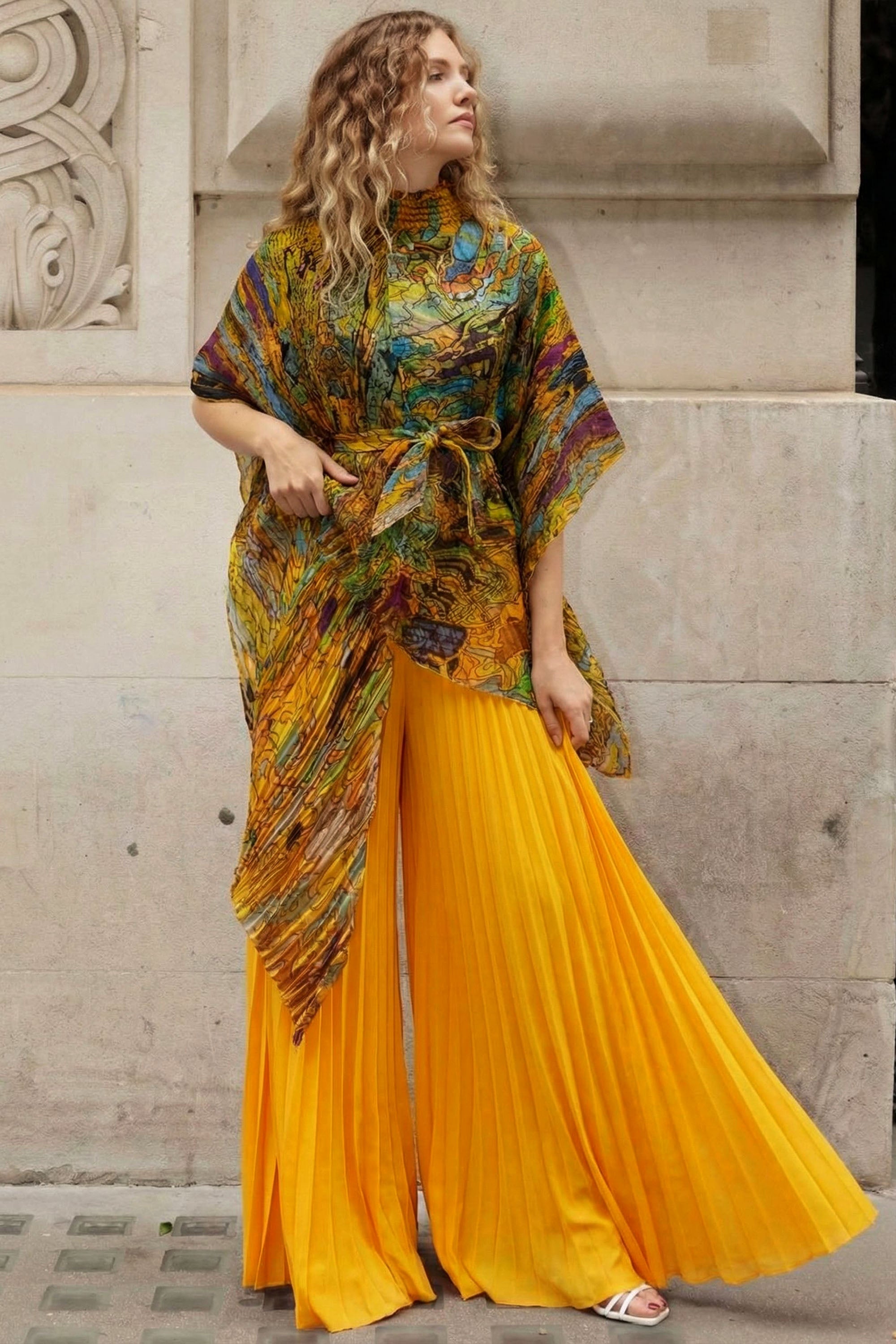 Cape-Sleeve Shirt & Wide-Leg Trouser Co-Ord In Orange