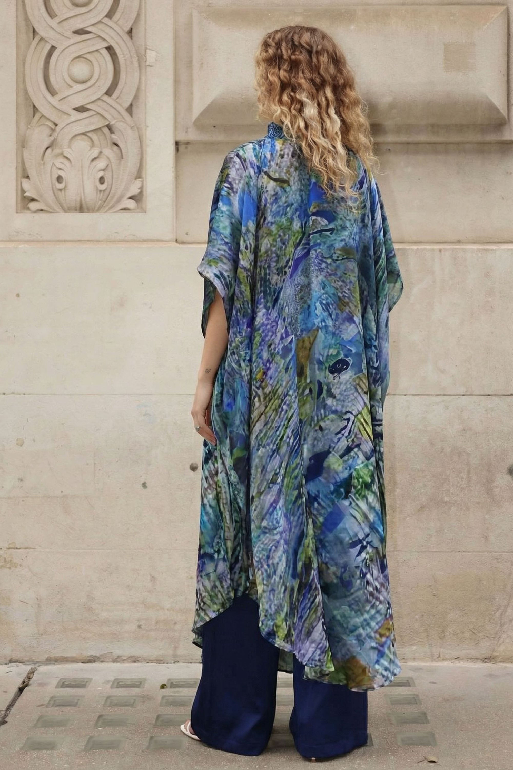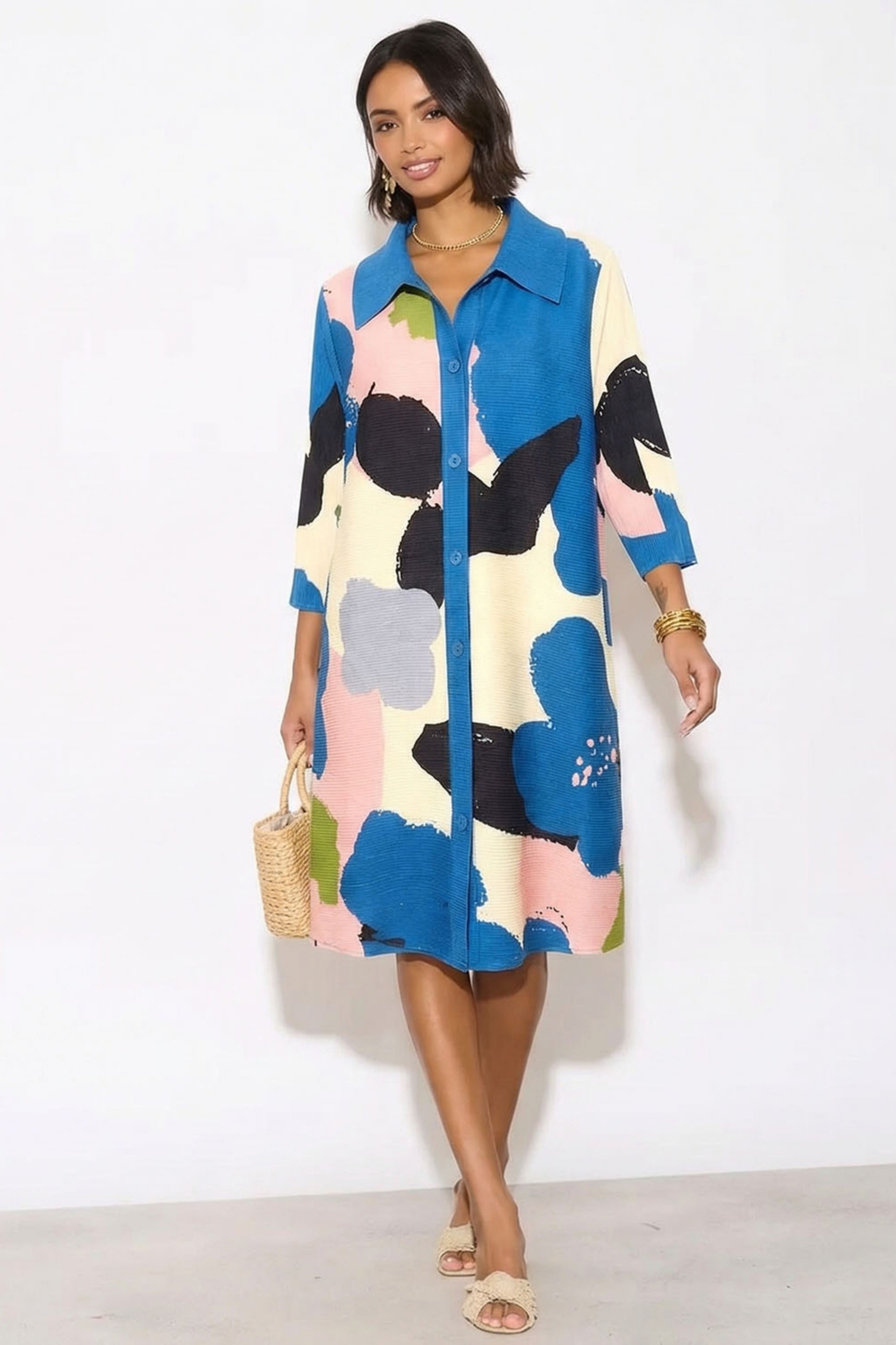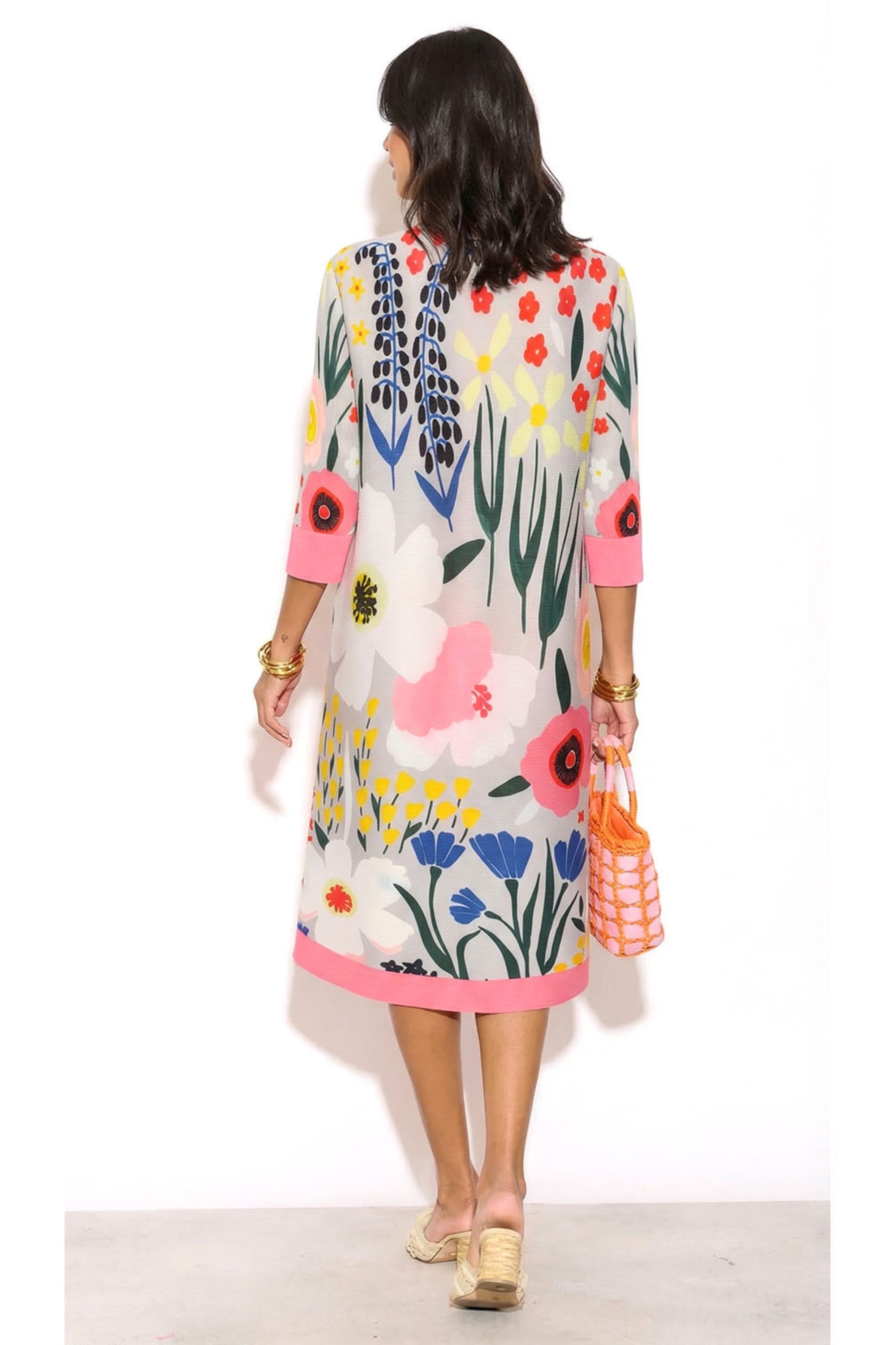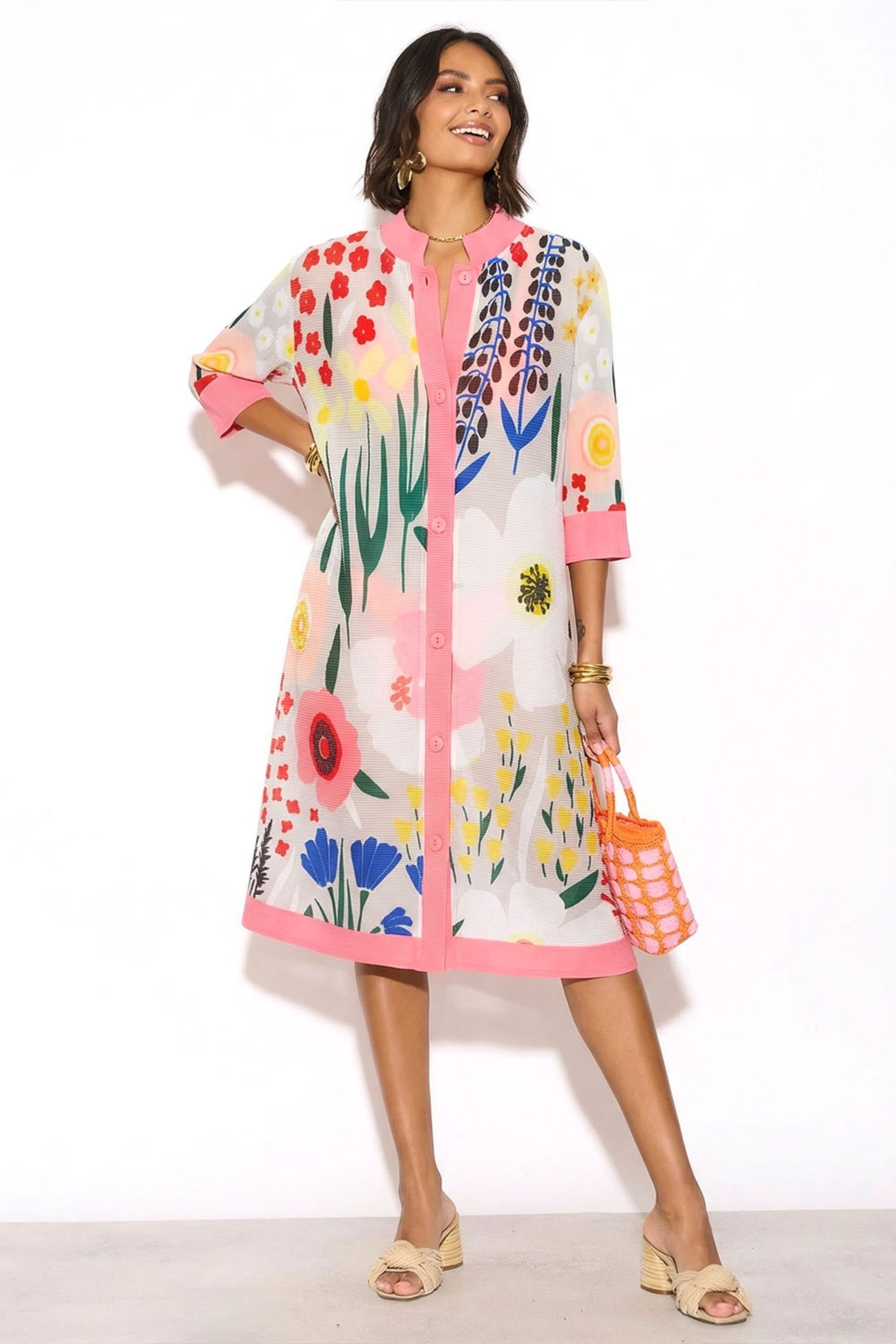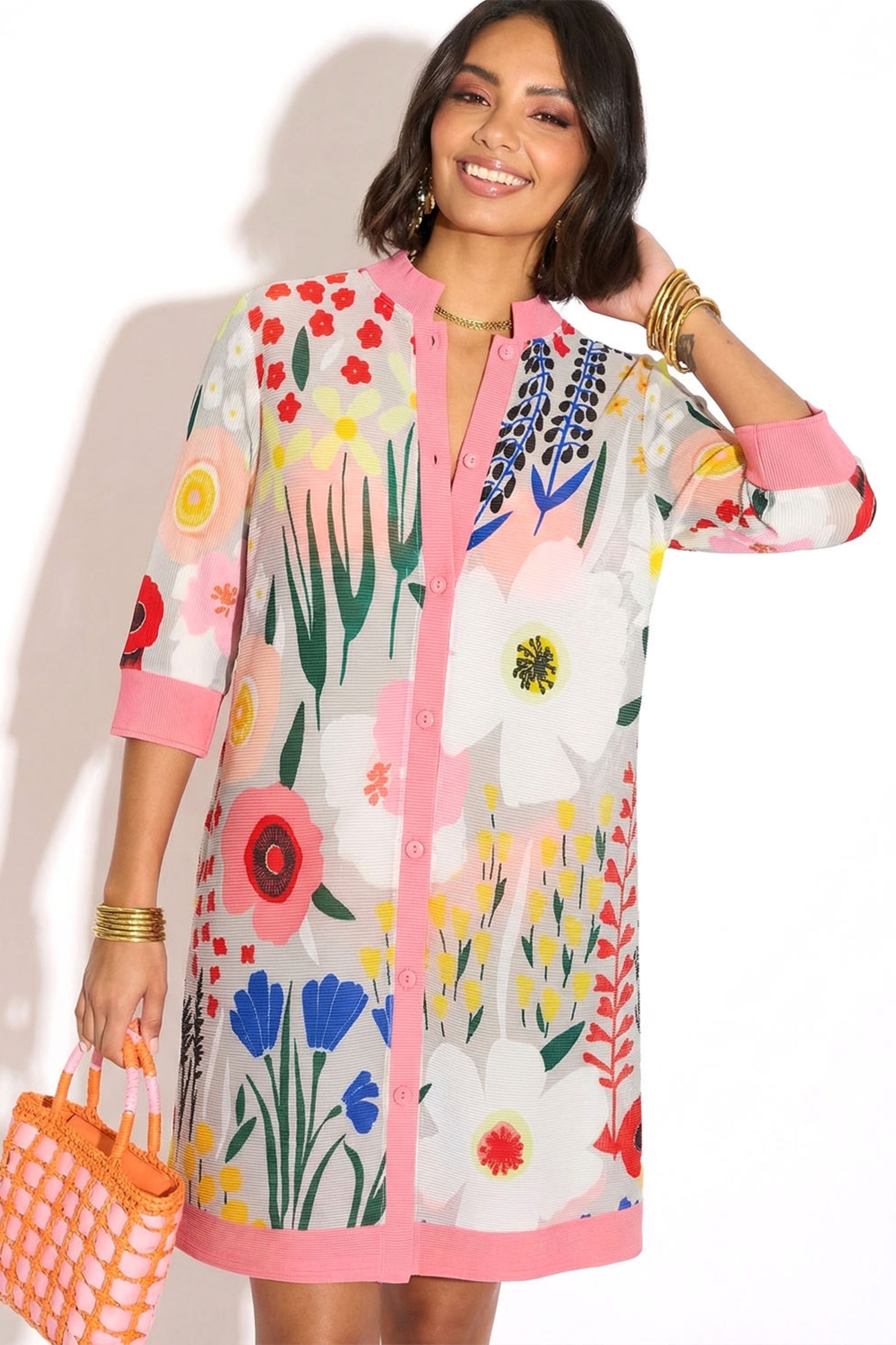 Painterly Wildflower Sheer Shirt Dress – Pink Trim