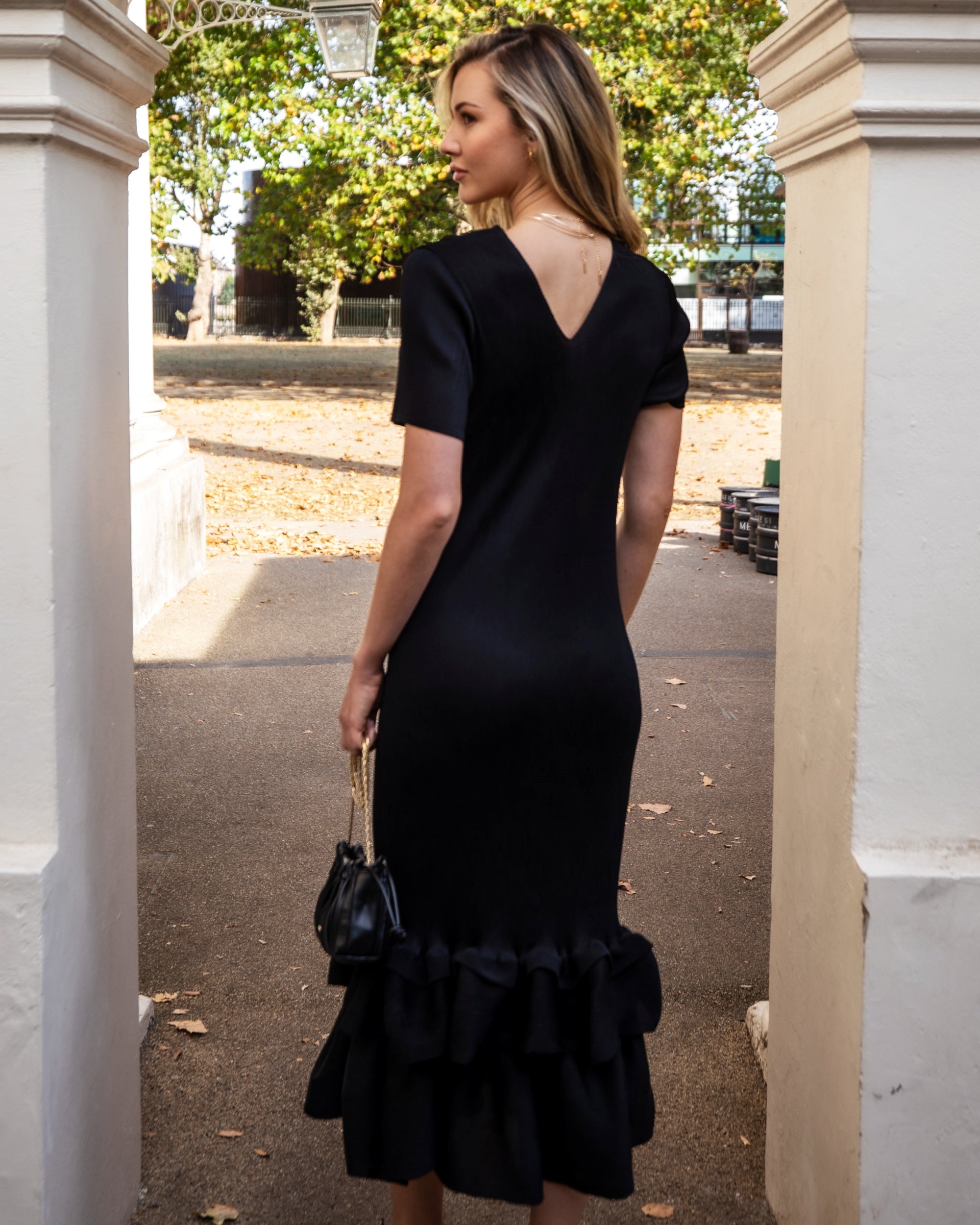 Full Pleated Ruffle Hem Maxi Dress in Black