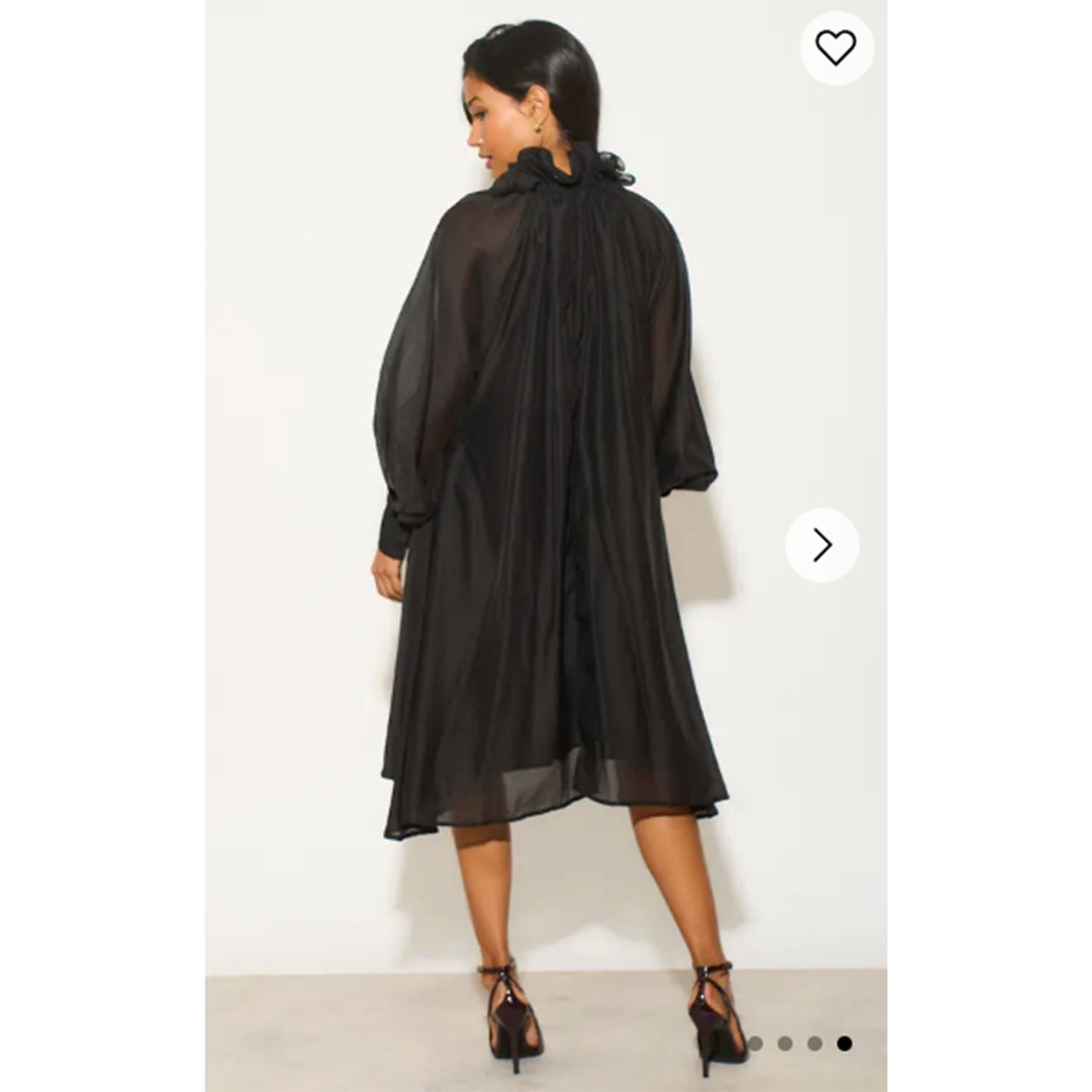 Rose Floral Tie-Neck Oversized Midi Dress In Black