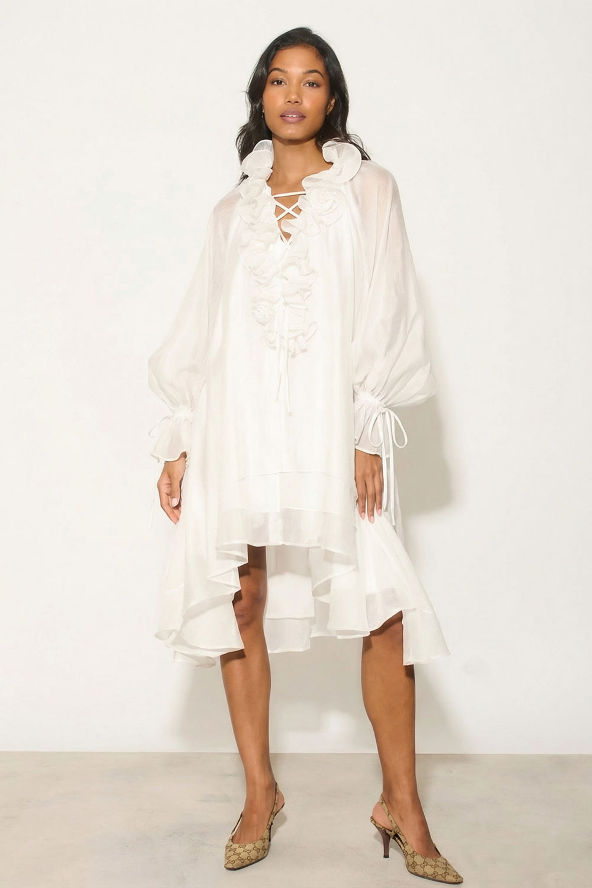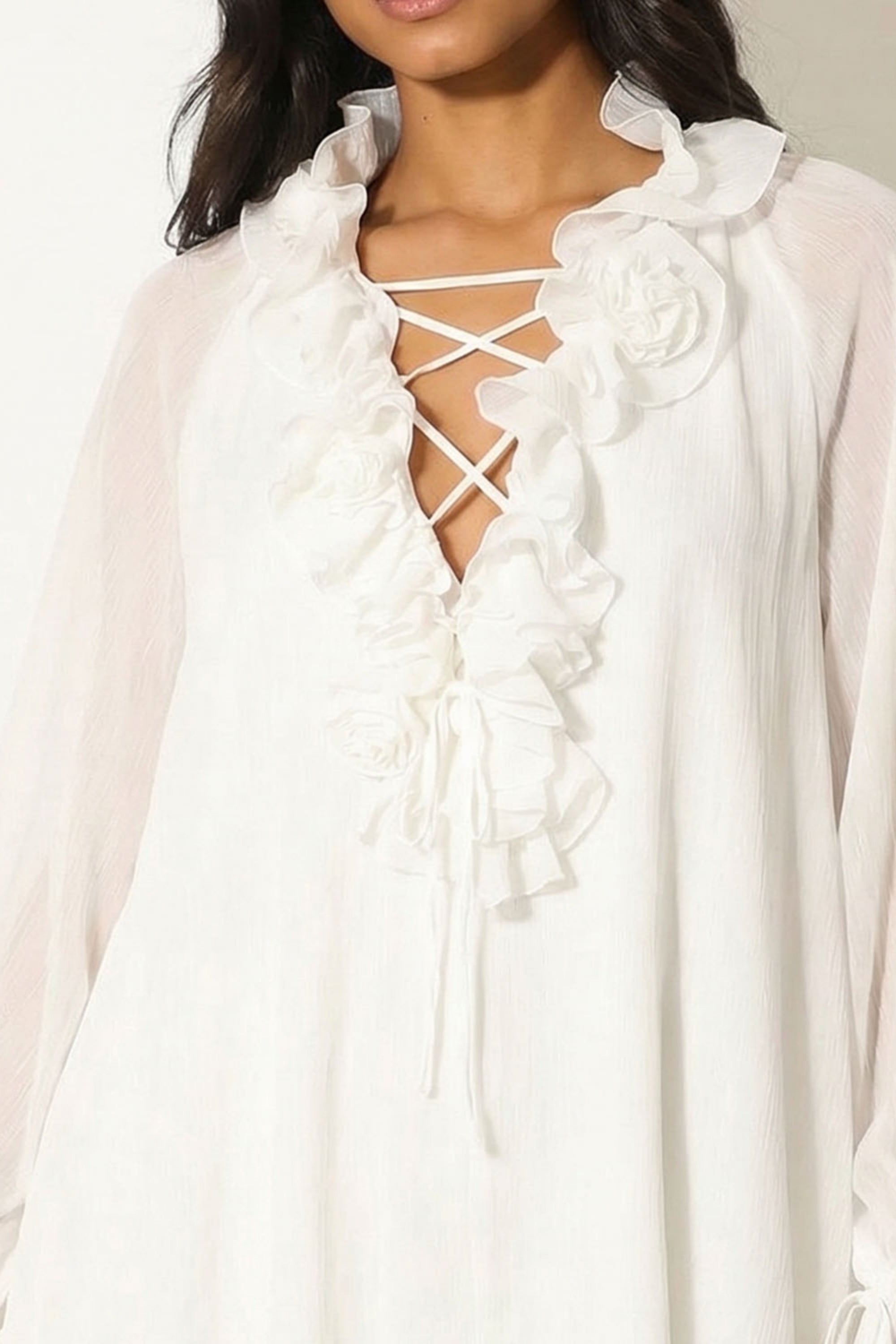 Statement Ruffle Design Organza Ruffle Blouse In White