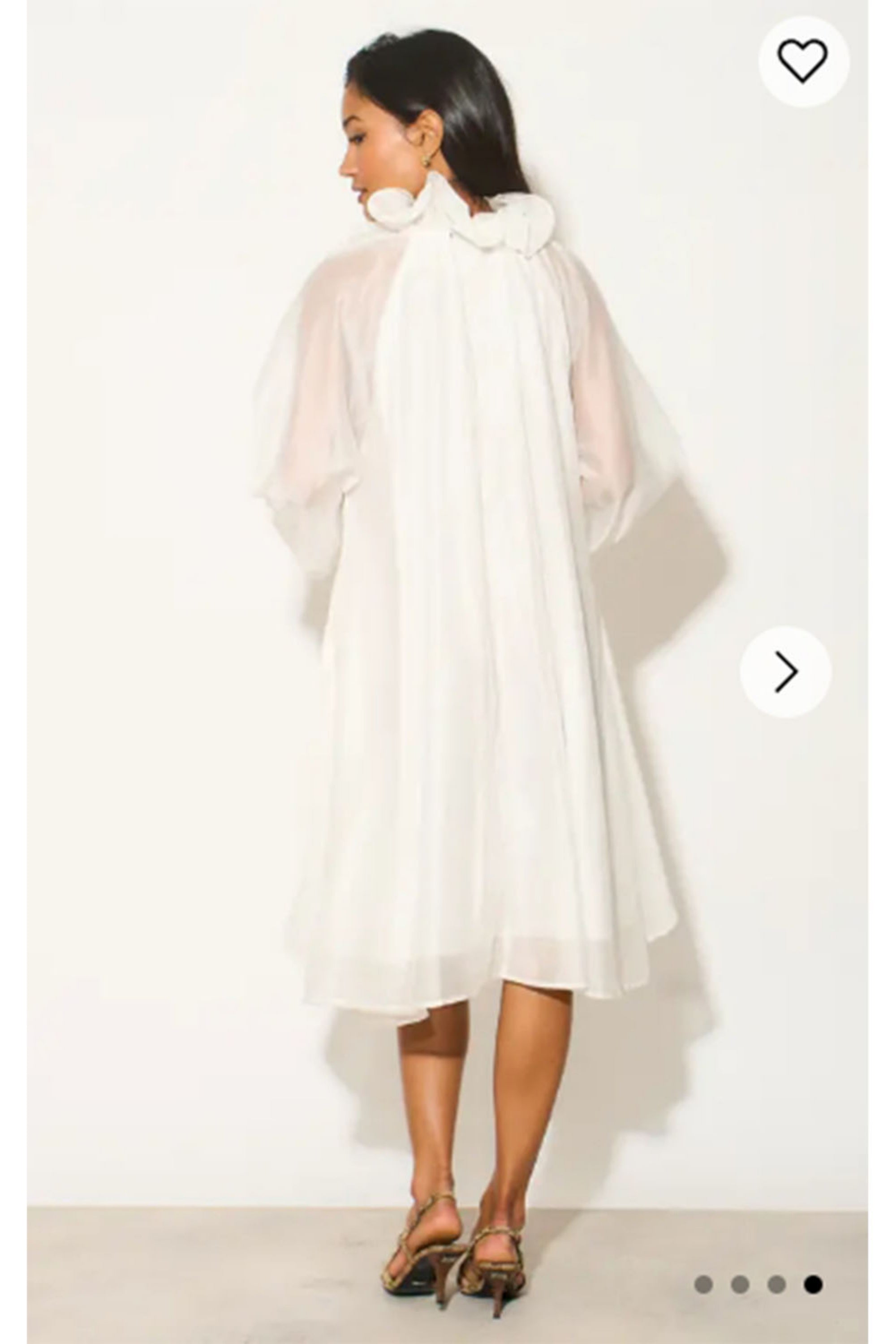 Rose Floral Tie-Neck Oversized Midi Dress In White