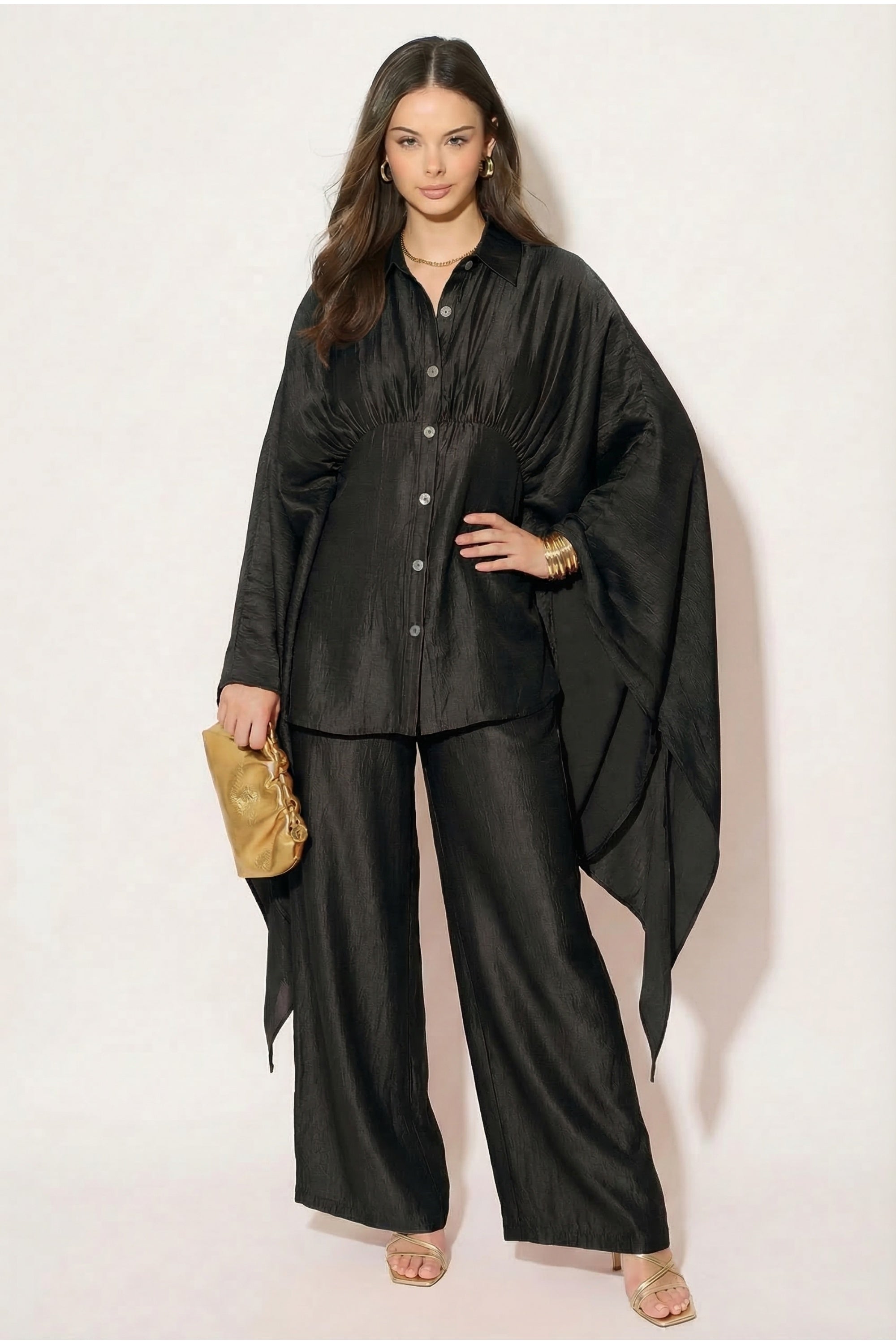 Cape-Sleeve Shirt & Wide-Leg Trouser Co-Ord In Black