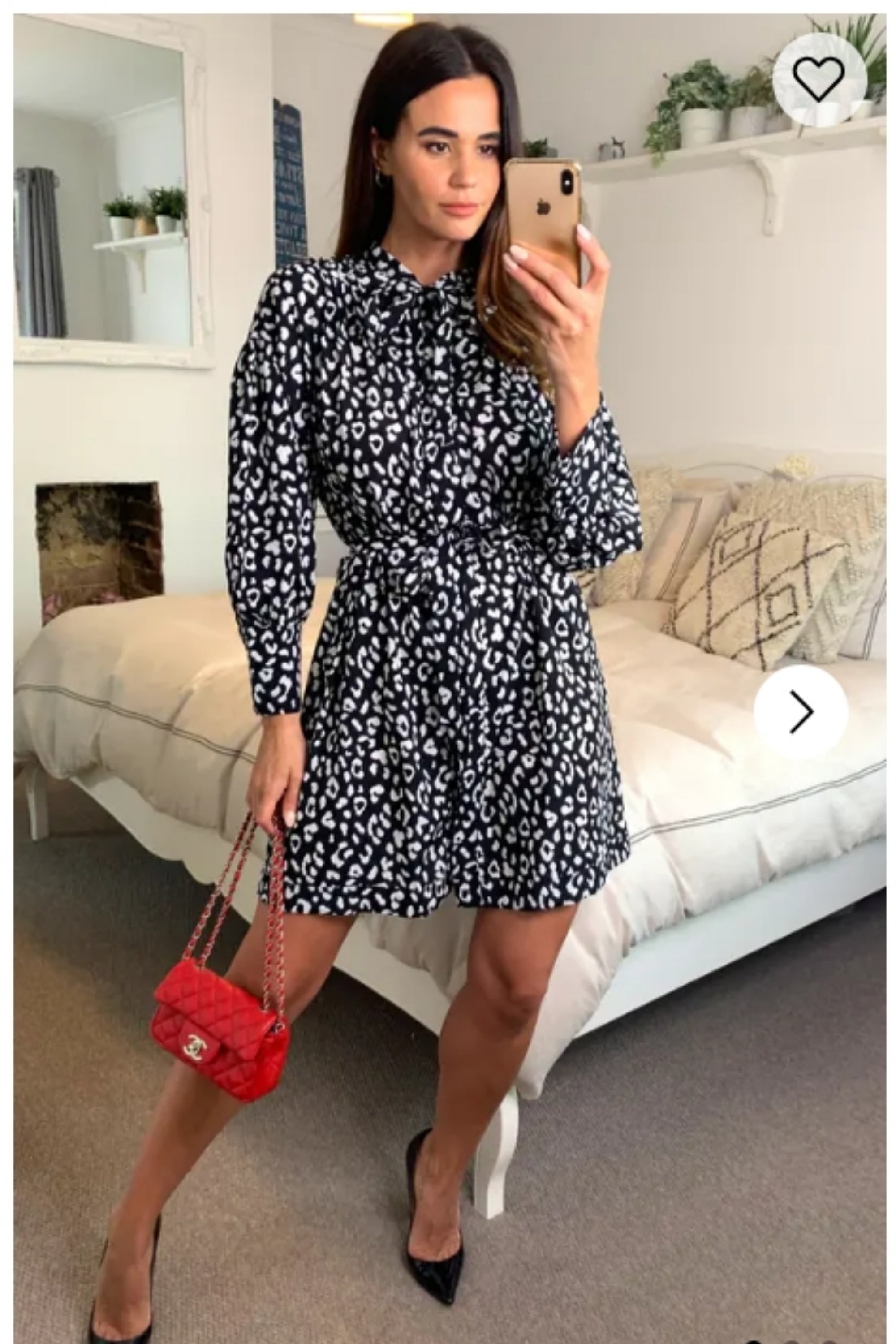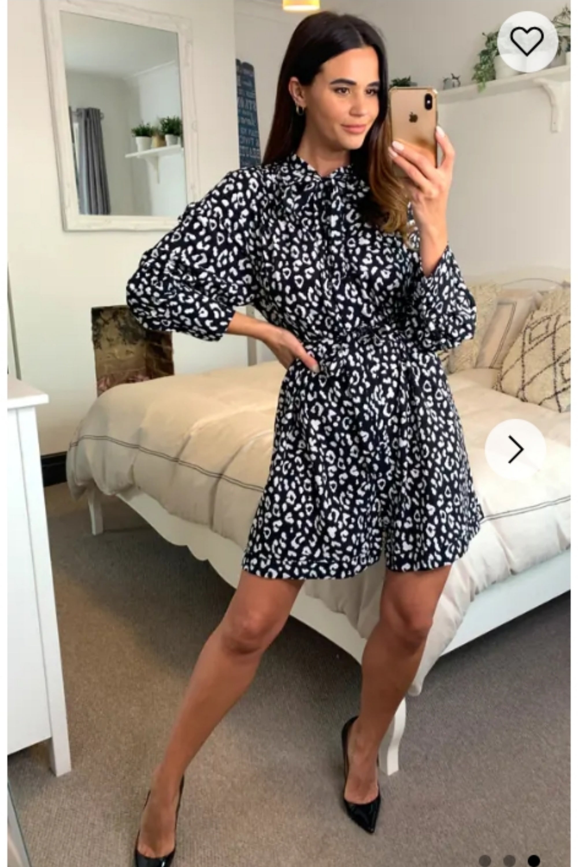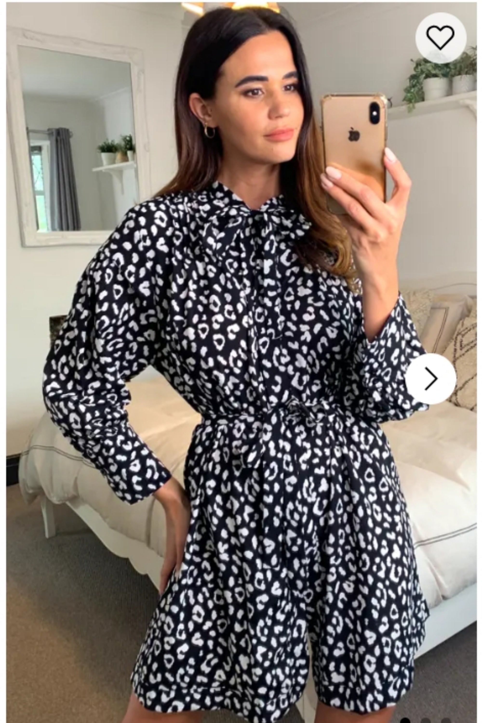 Long Sleeve Shirt Dress with Tie Waist in Black and White Print