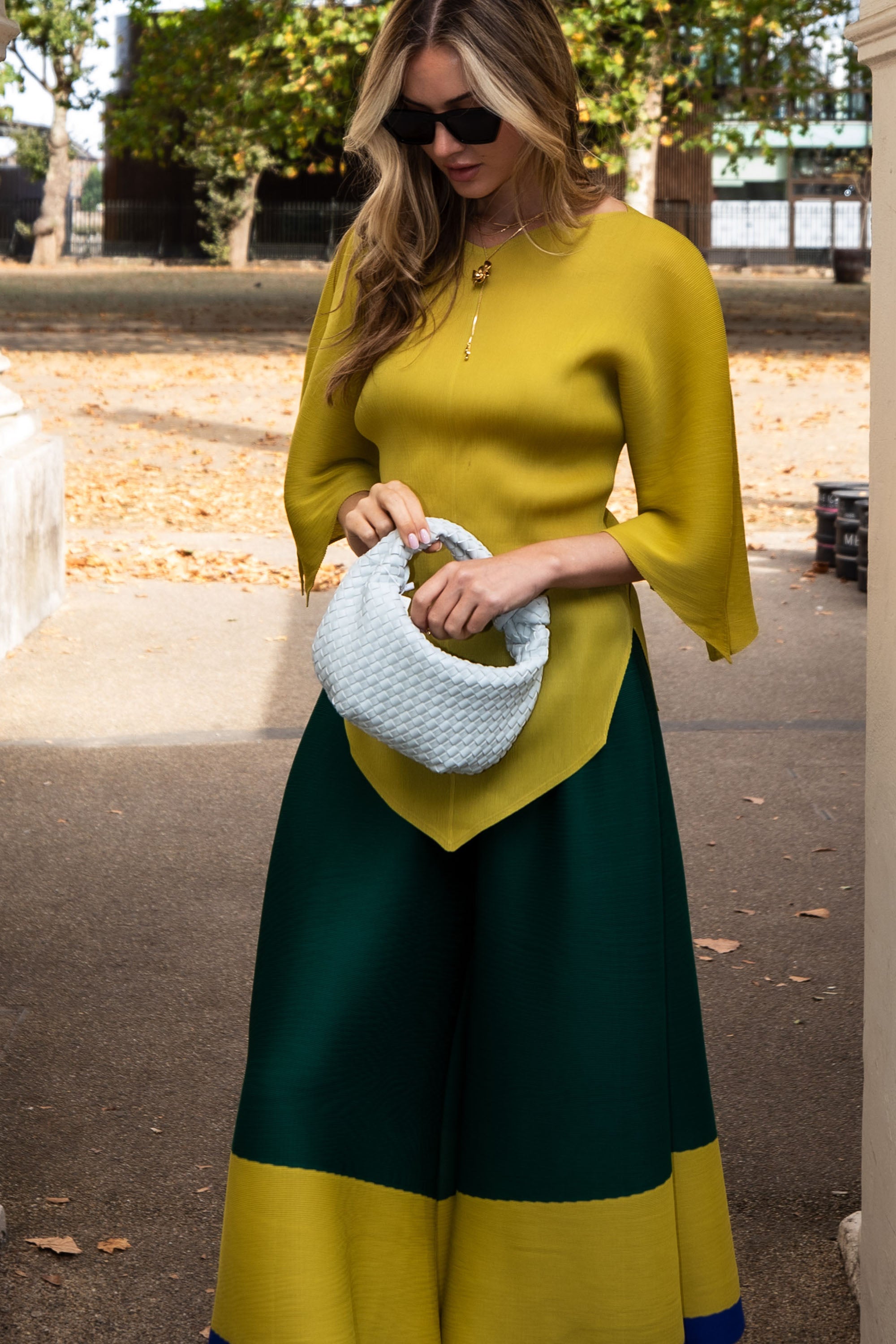 Full pleated Long sleeves top and trousers in Green