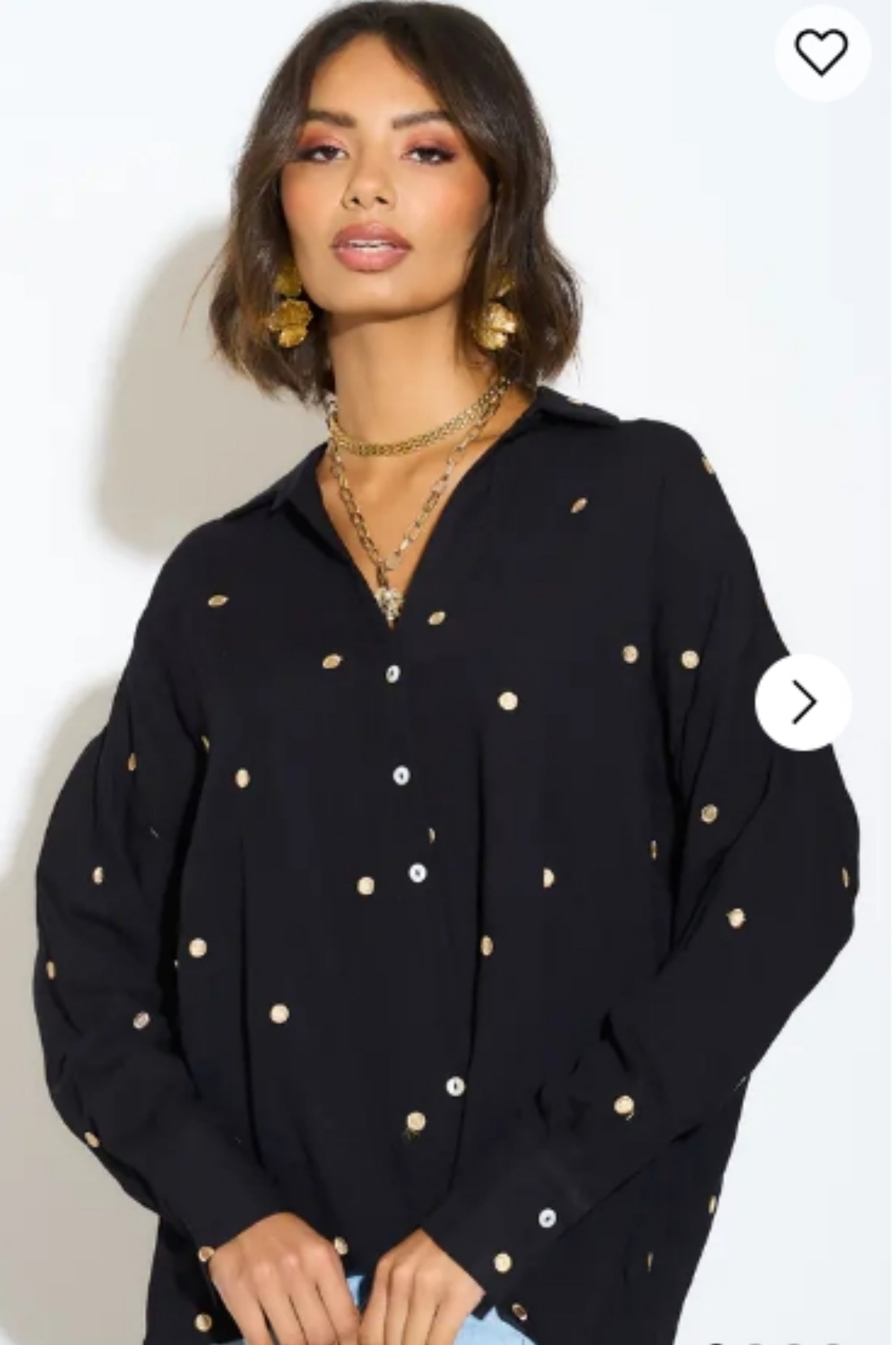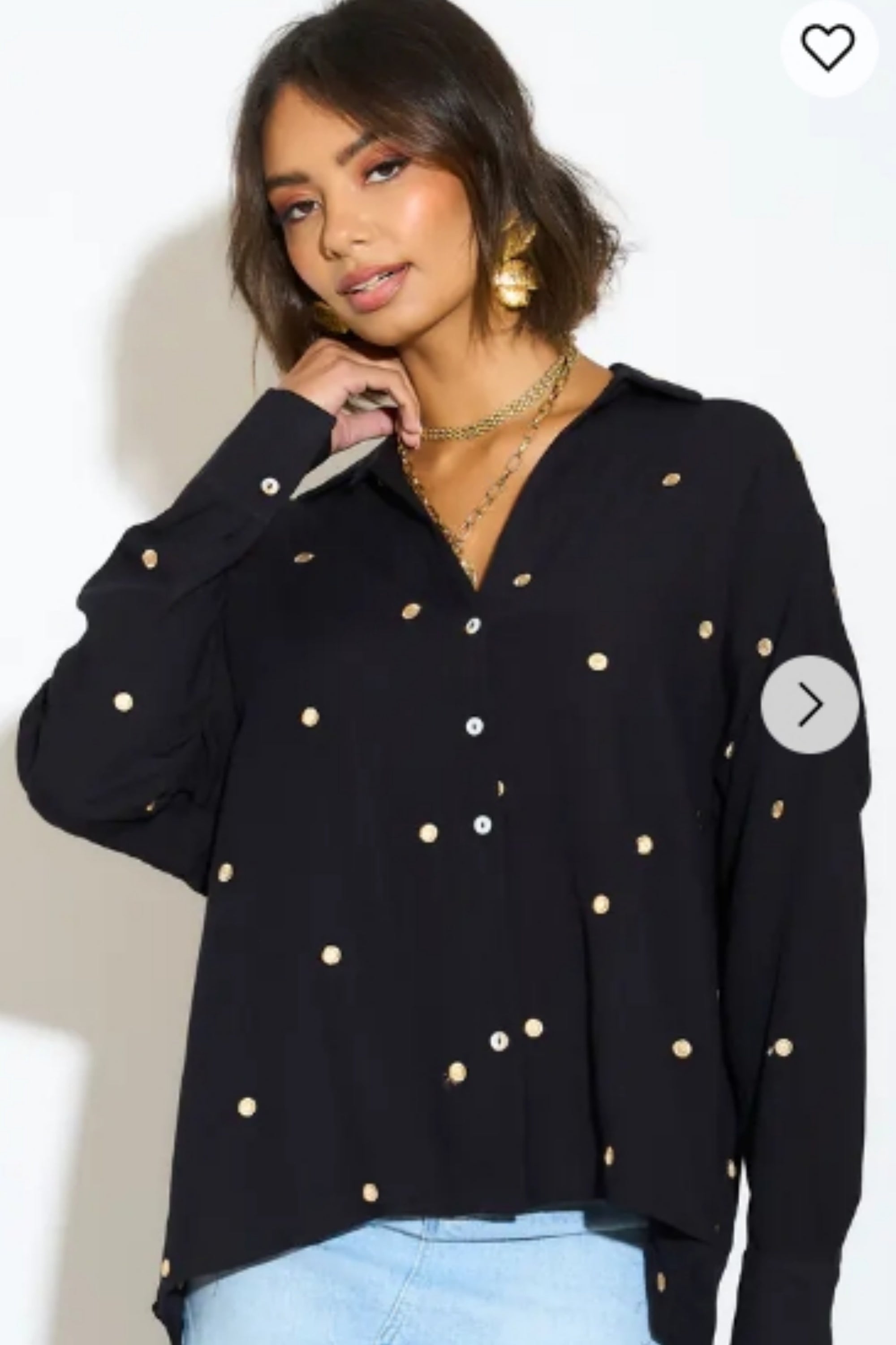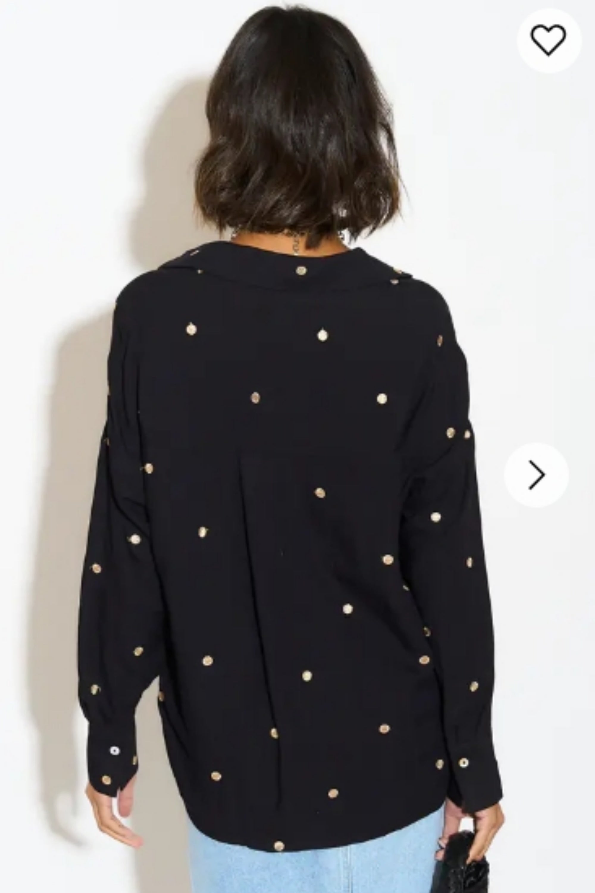 Gold Polka Dots Embroidered Shirt in Soft cotton fabric in Black