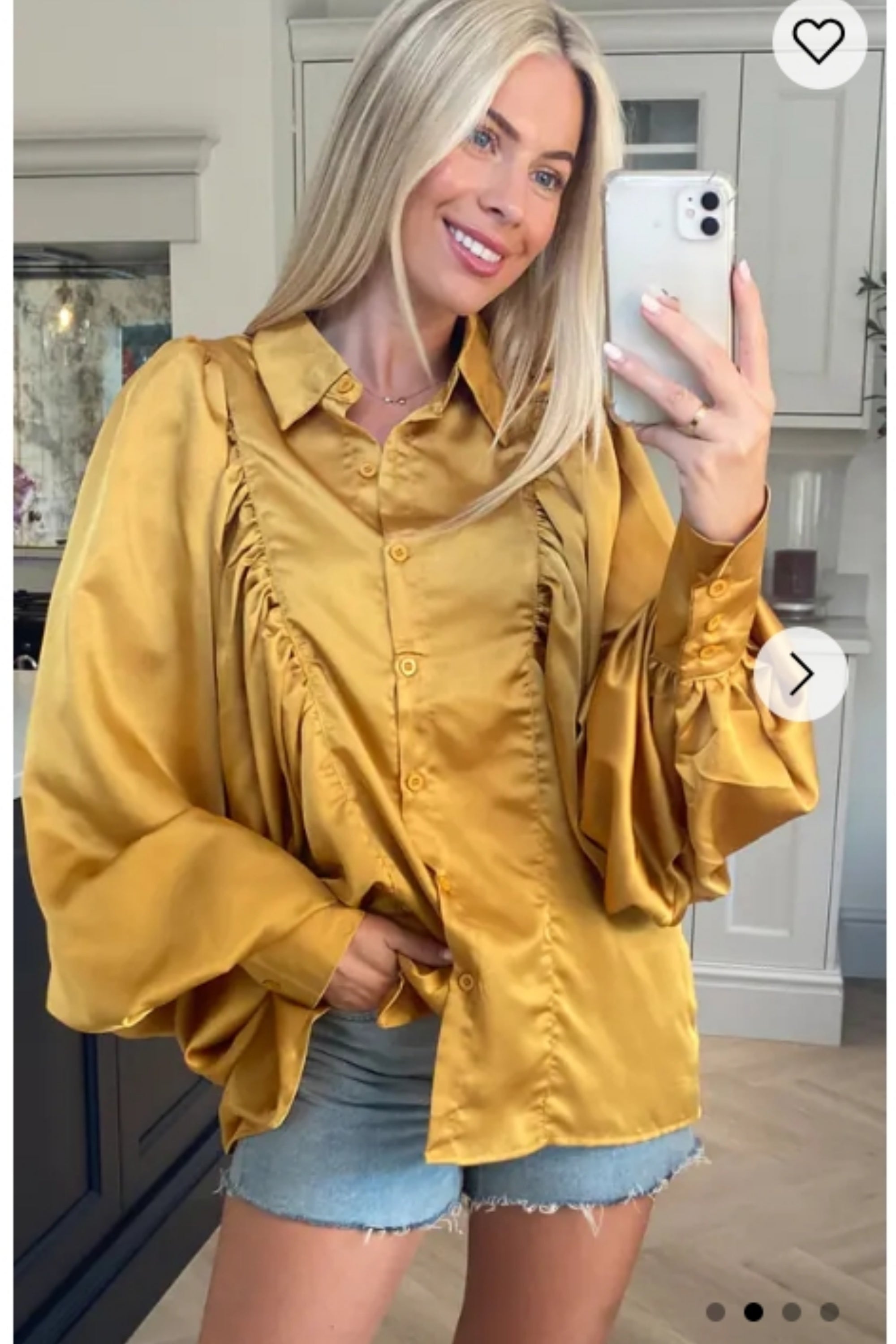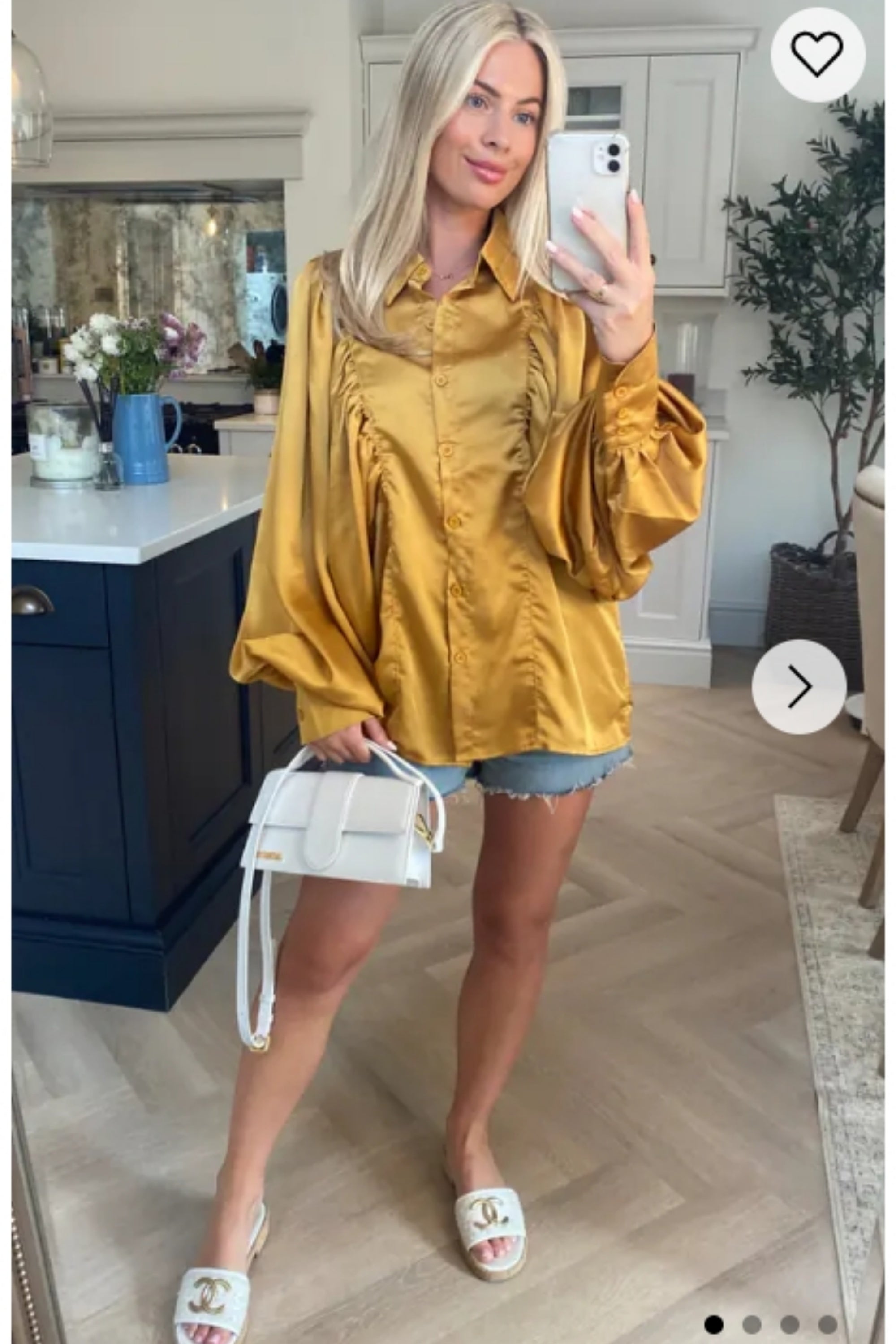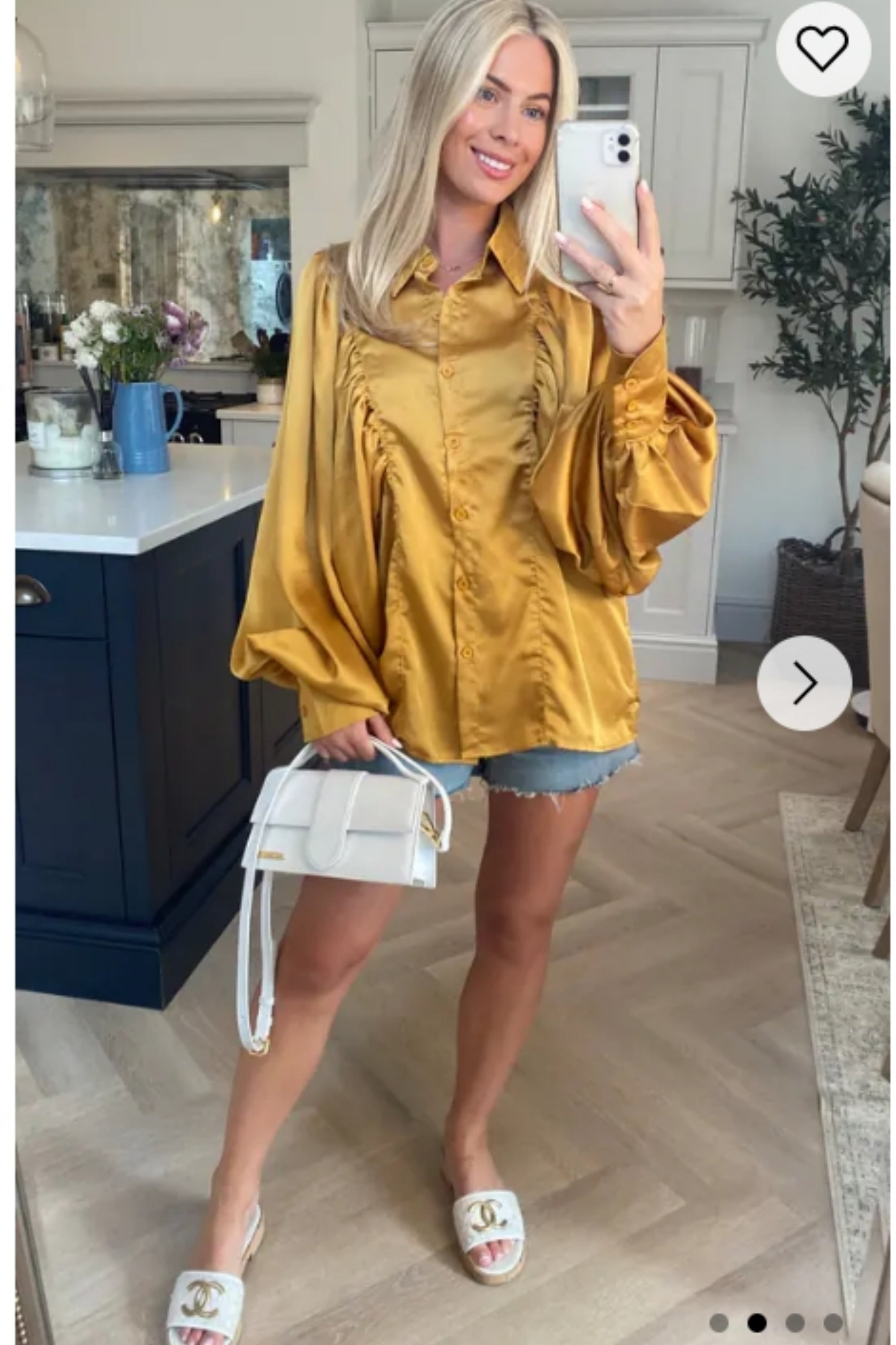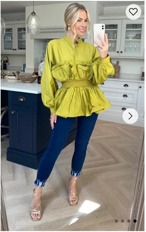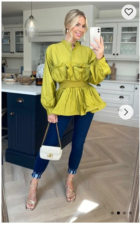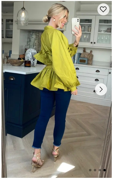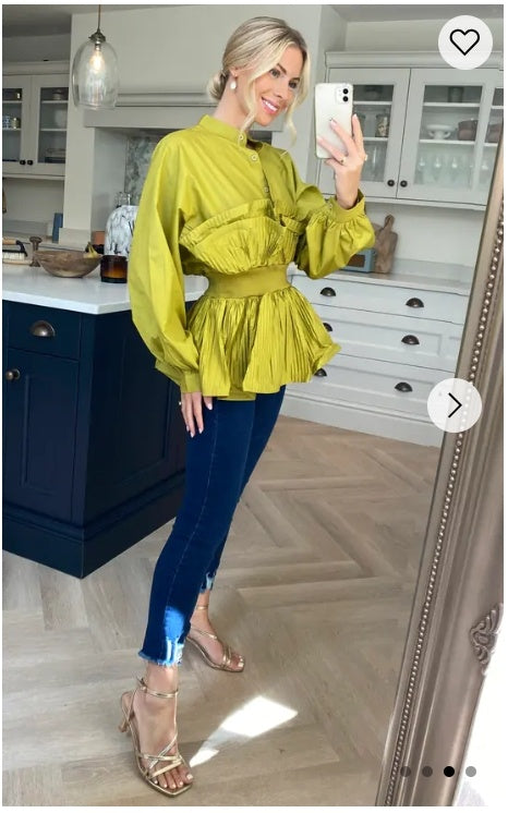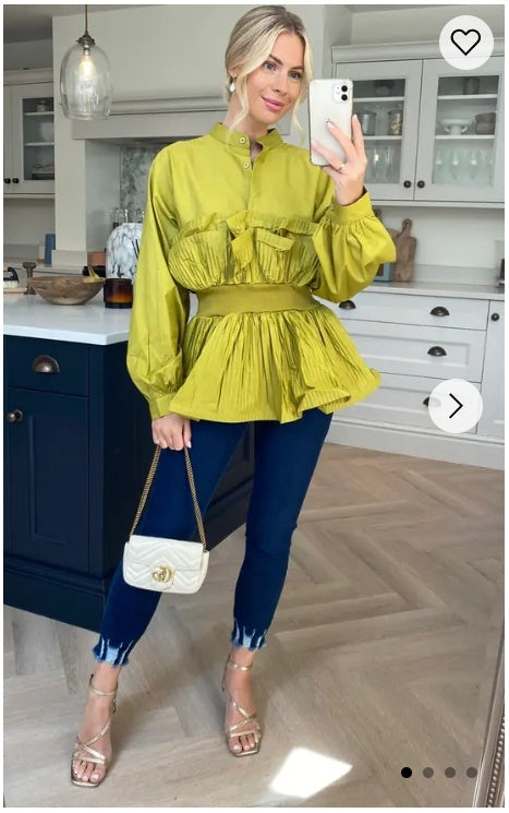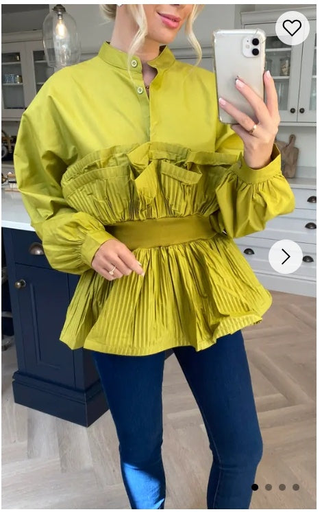Pleated ruffles with multi dimoned stone embellished sleeves design organza shirt in Peach
