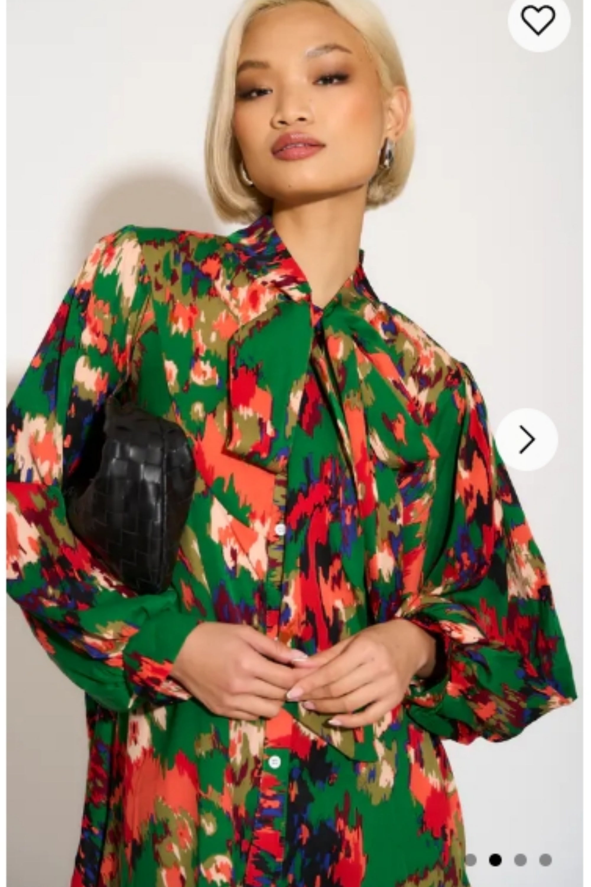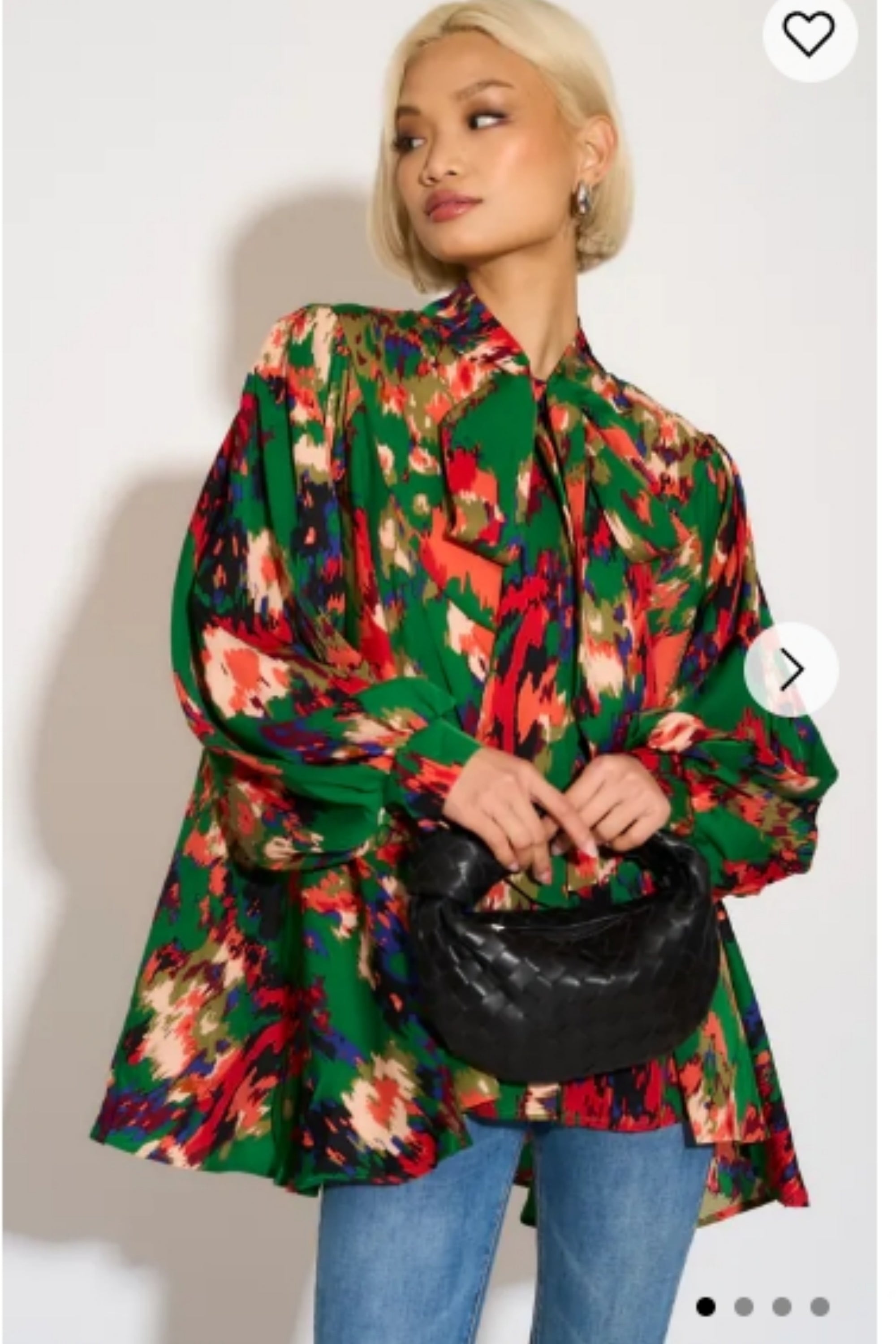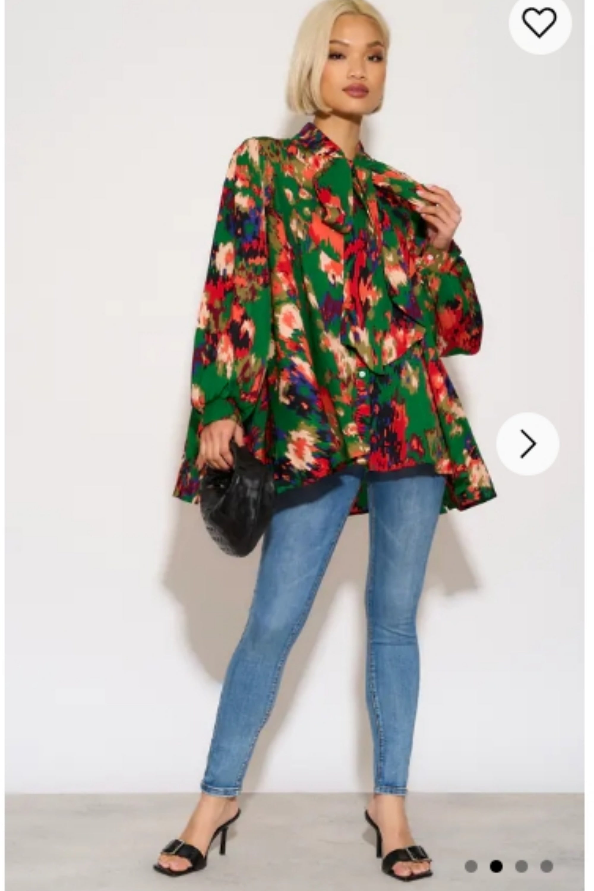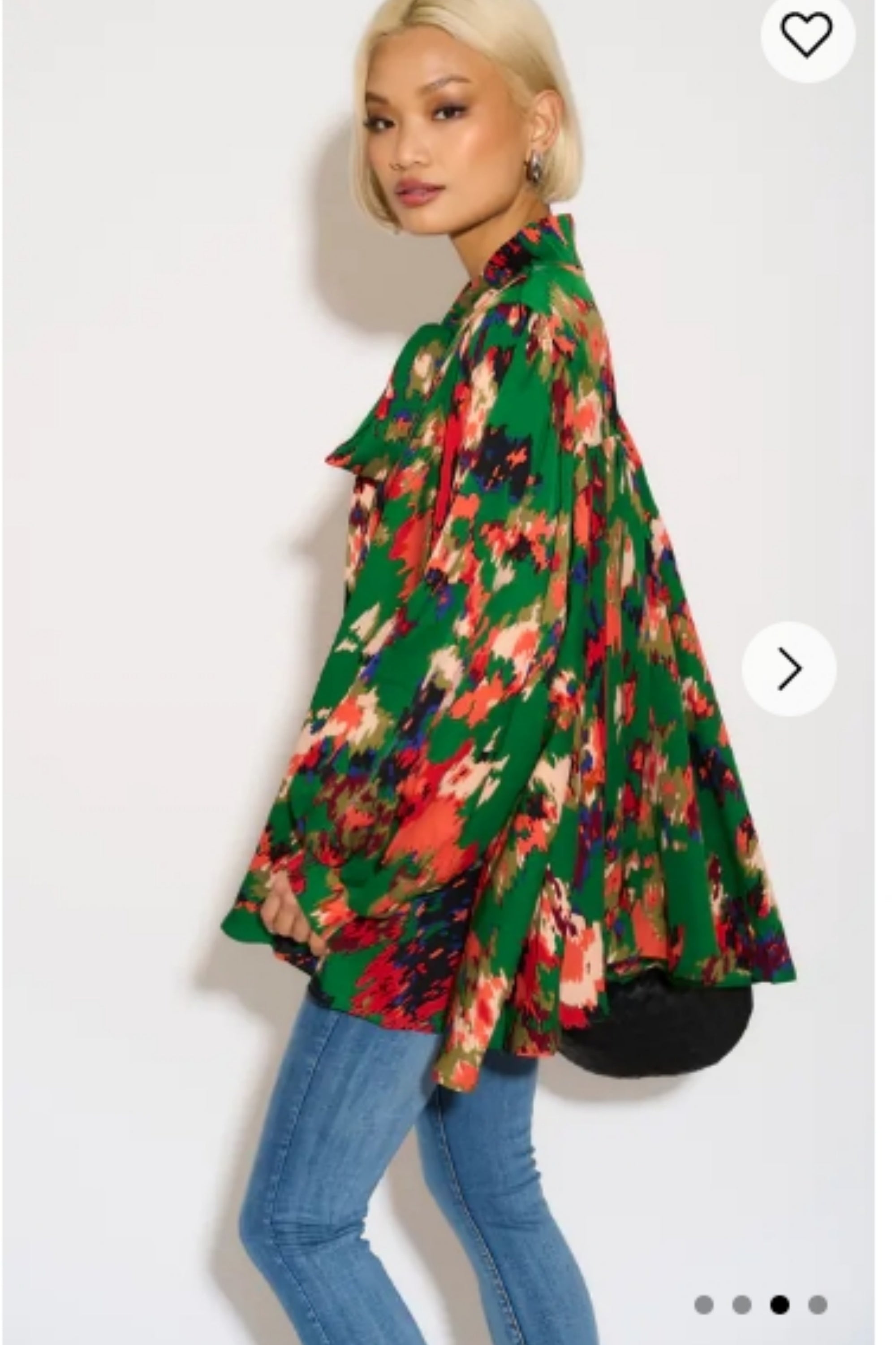 Wild Bloom multi color print oversized shirt with tie up bow design in Green