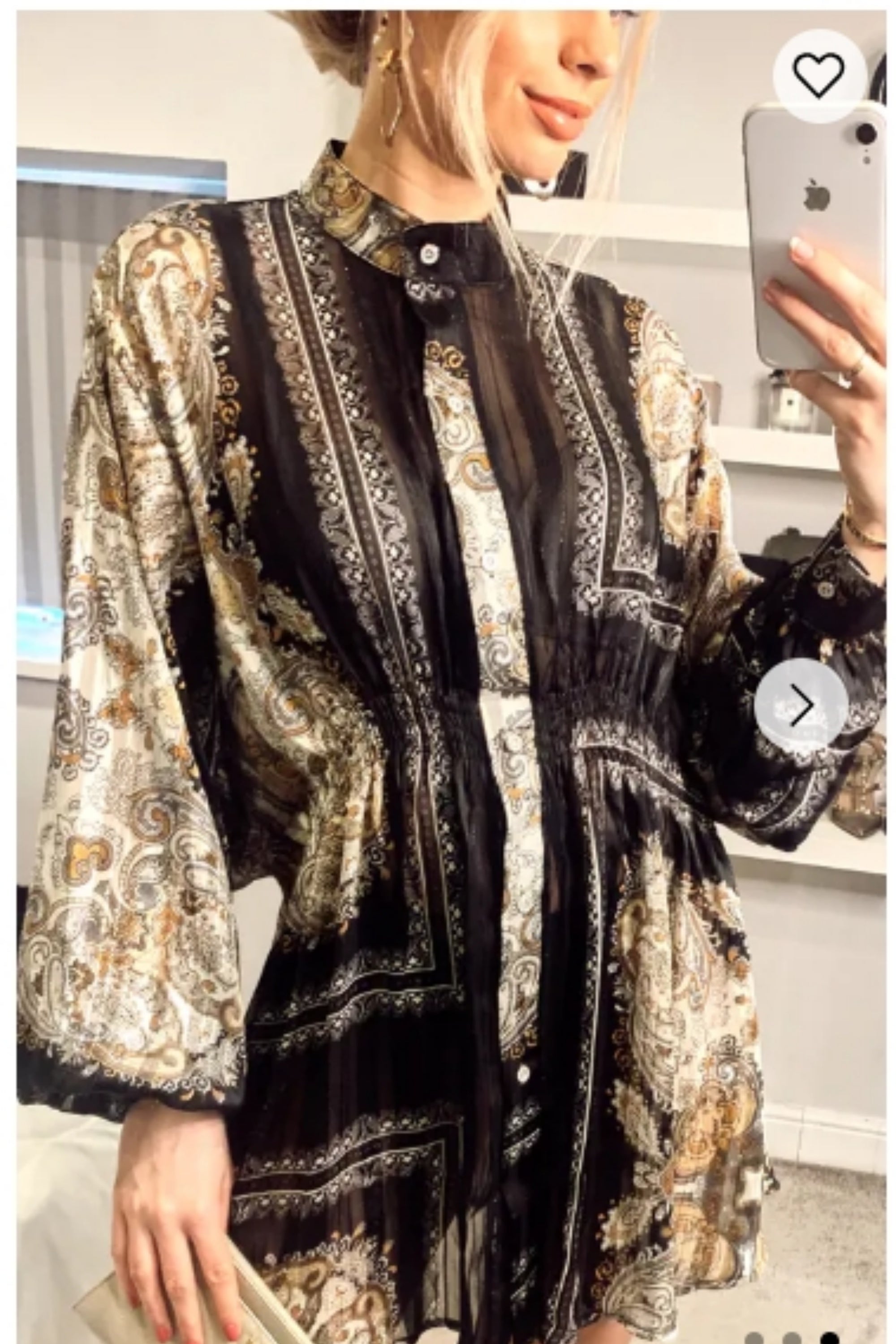 Wild Bloom multi color print oversized shirt with tie up bow design in Black