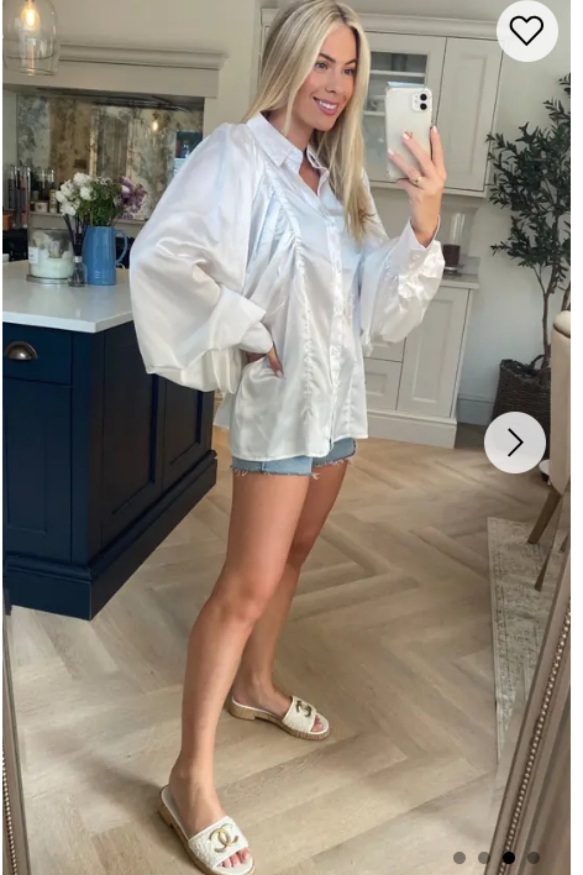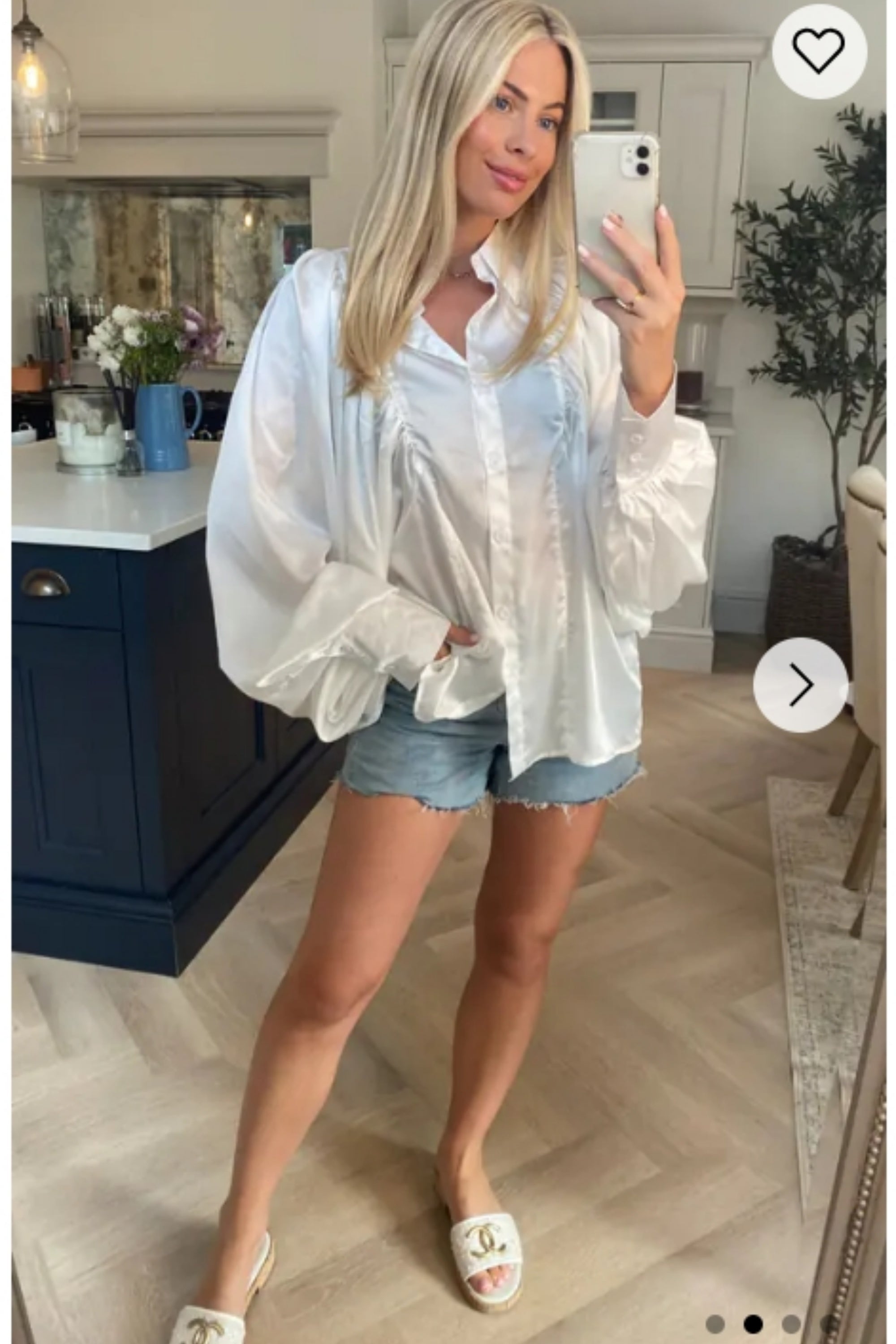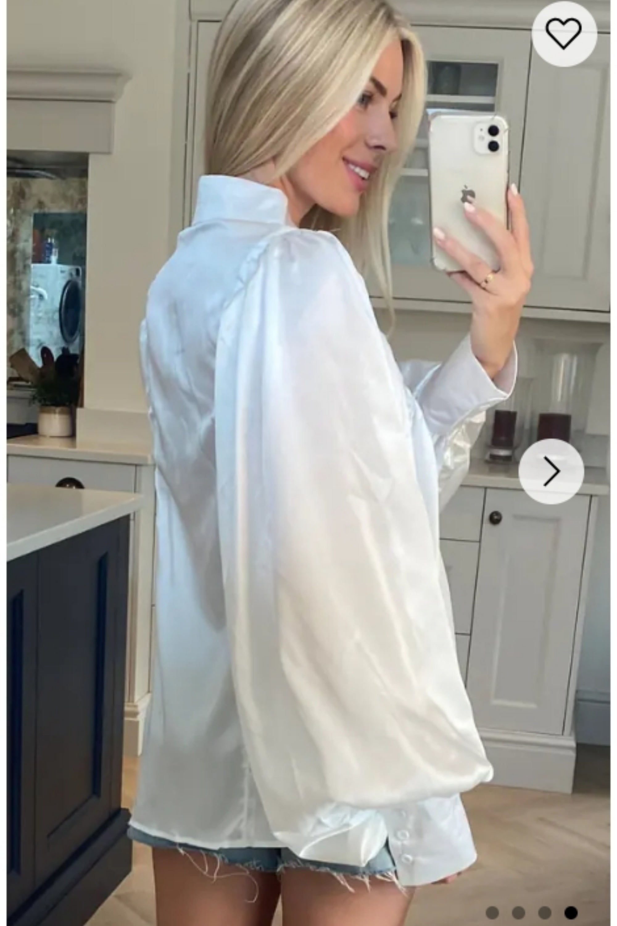 Pleated ruffles with multi dimoned stone embellished sleeves design organza shirt in white