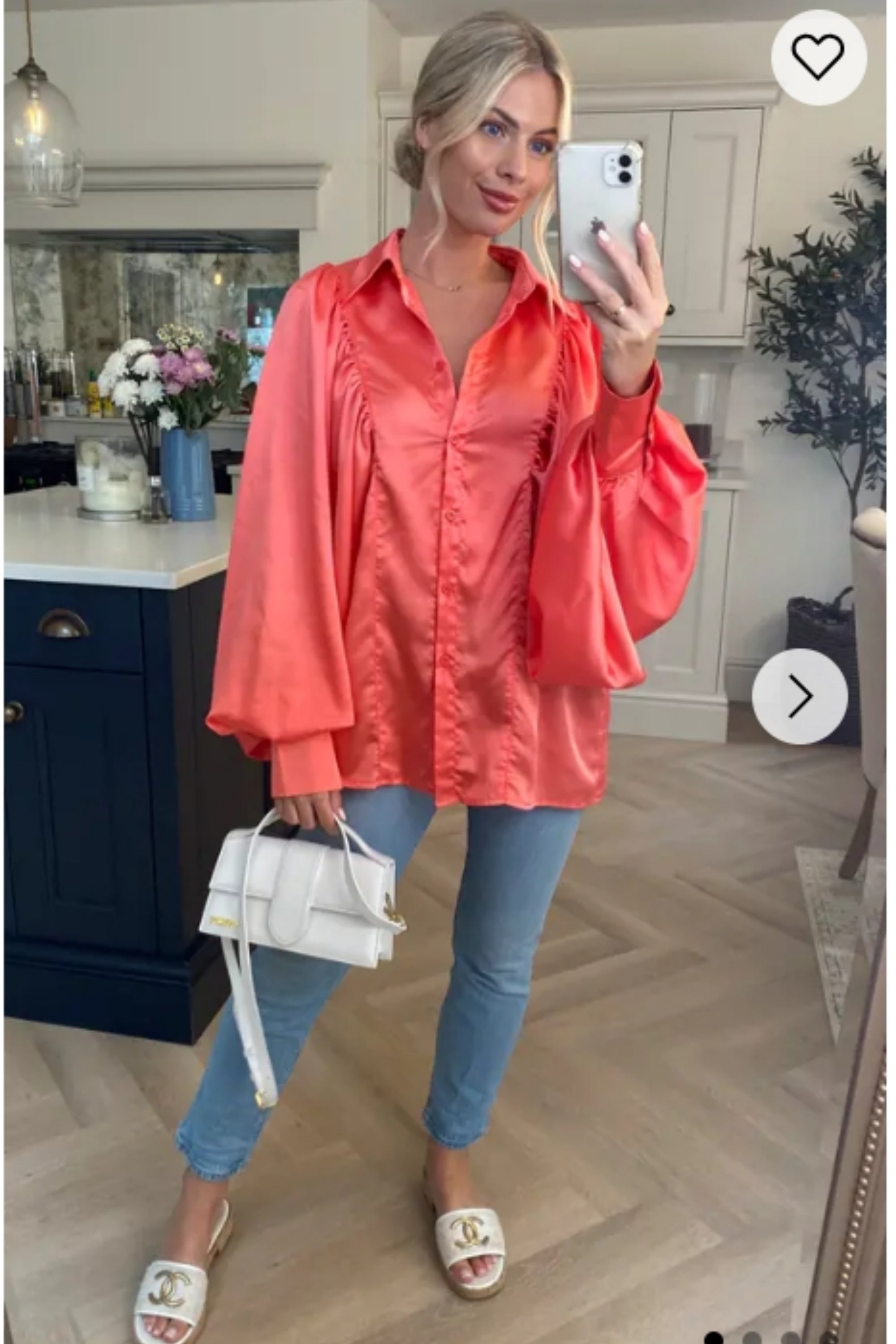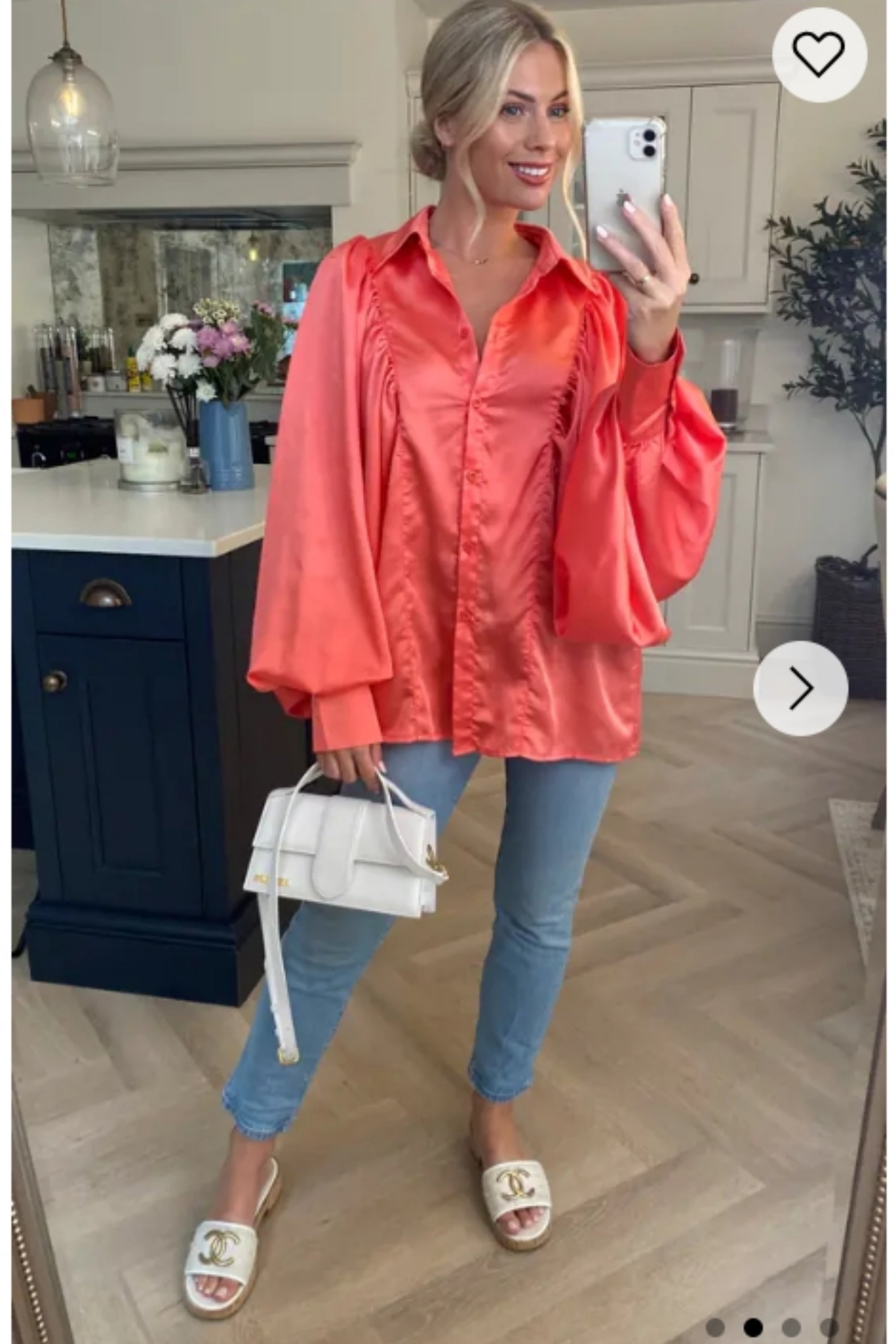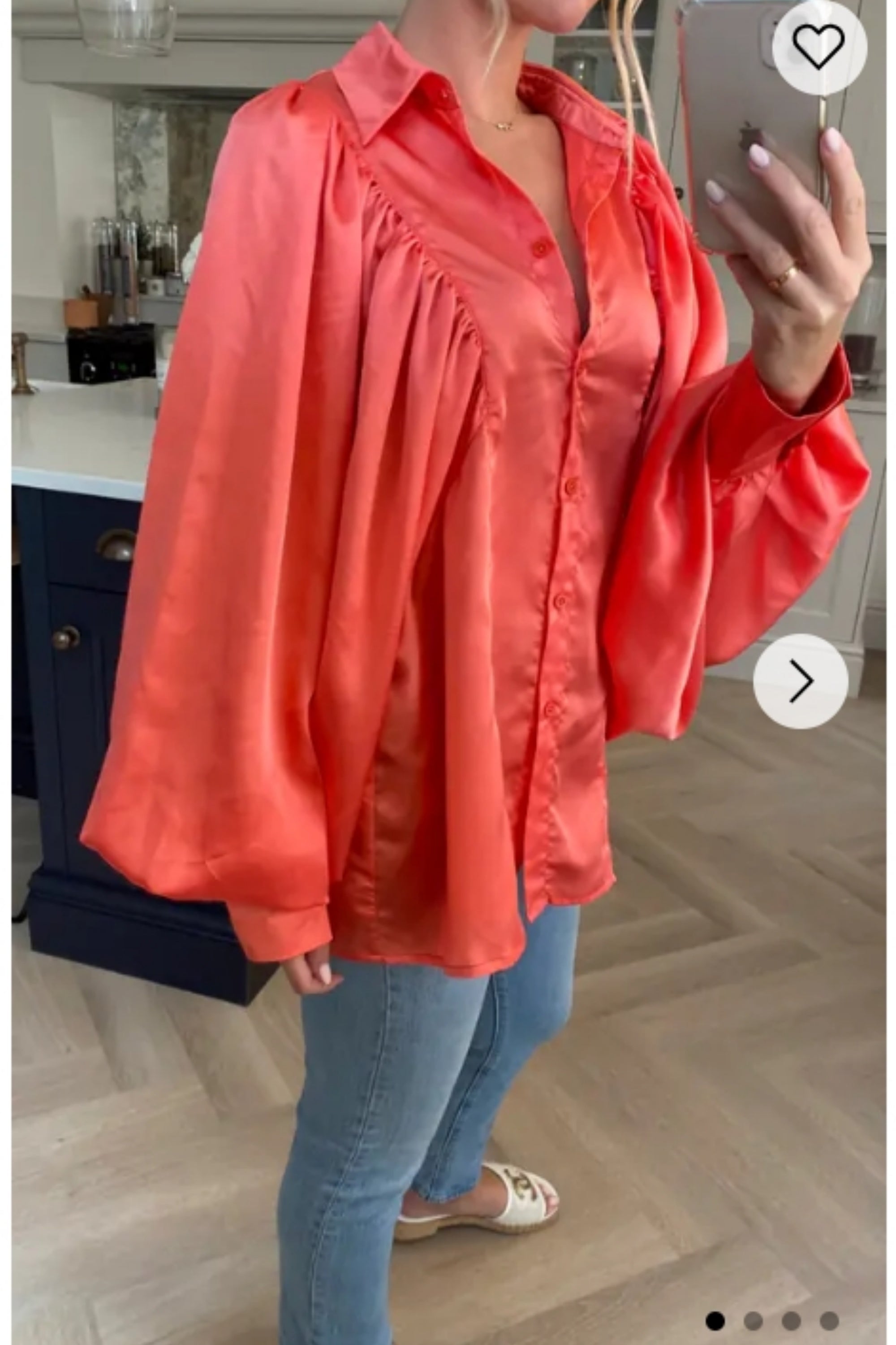 Oversized long shirt dress in textured jacquard design fabric orange color