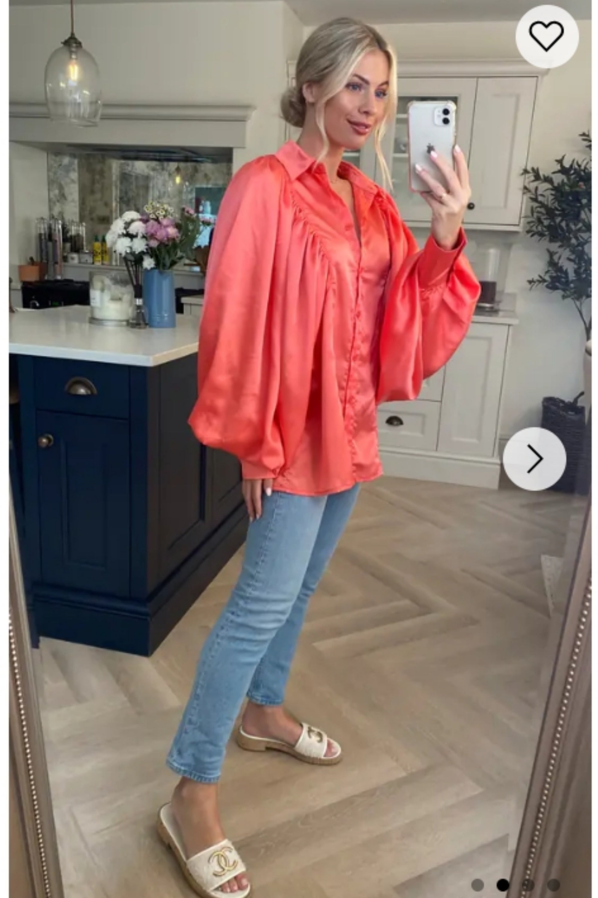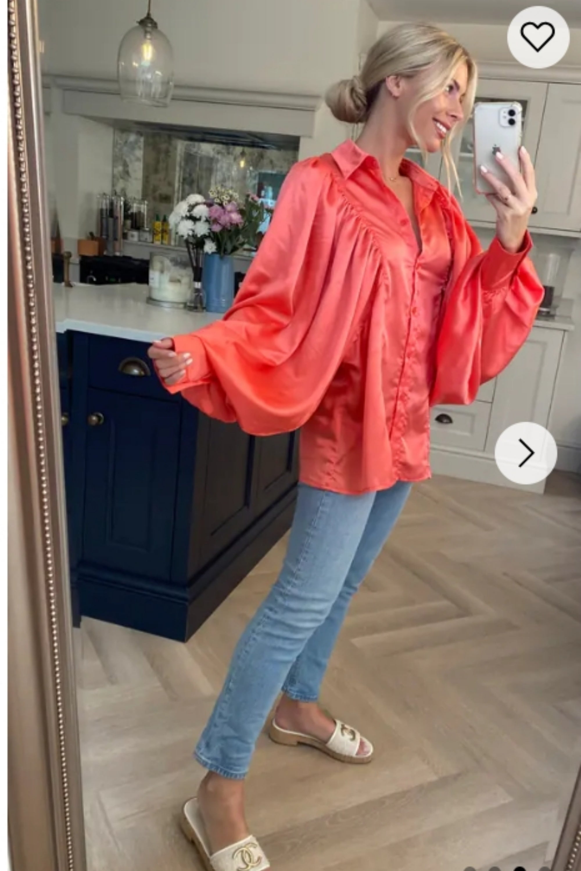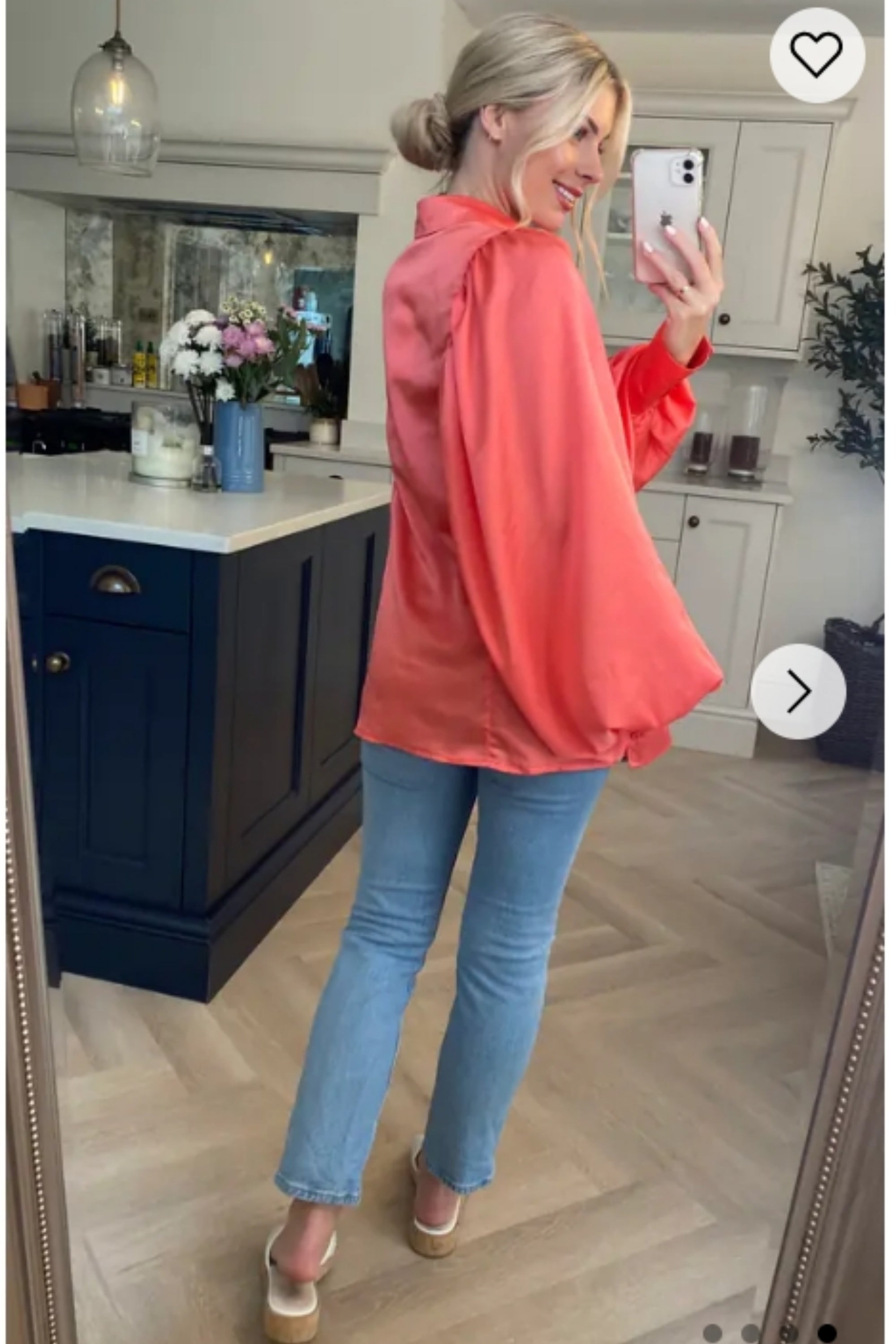 Oversized long shirt dress in textured jacquard design fabric orange color