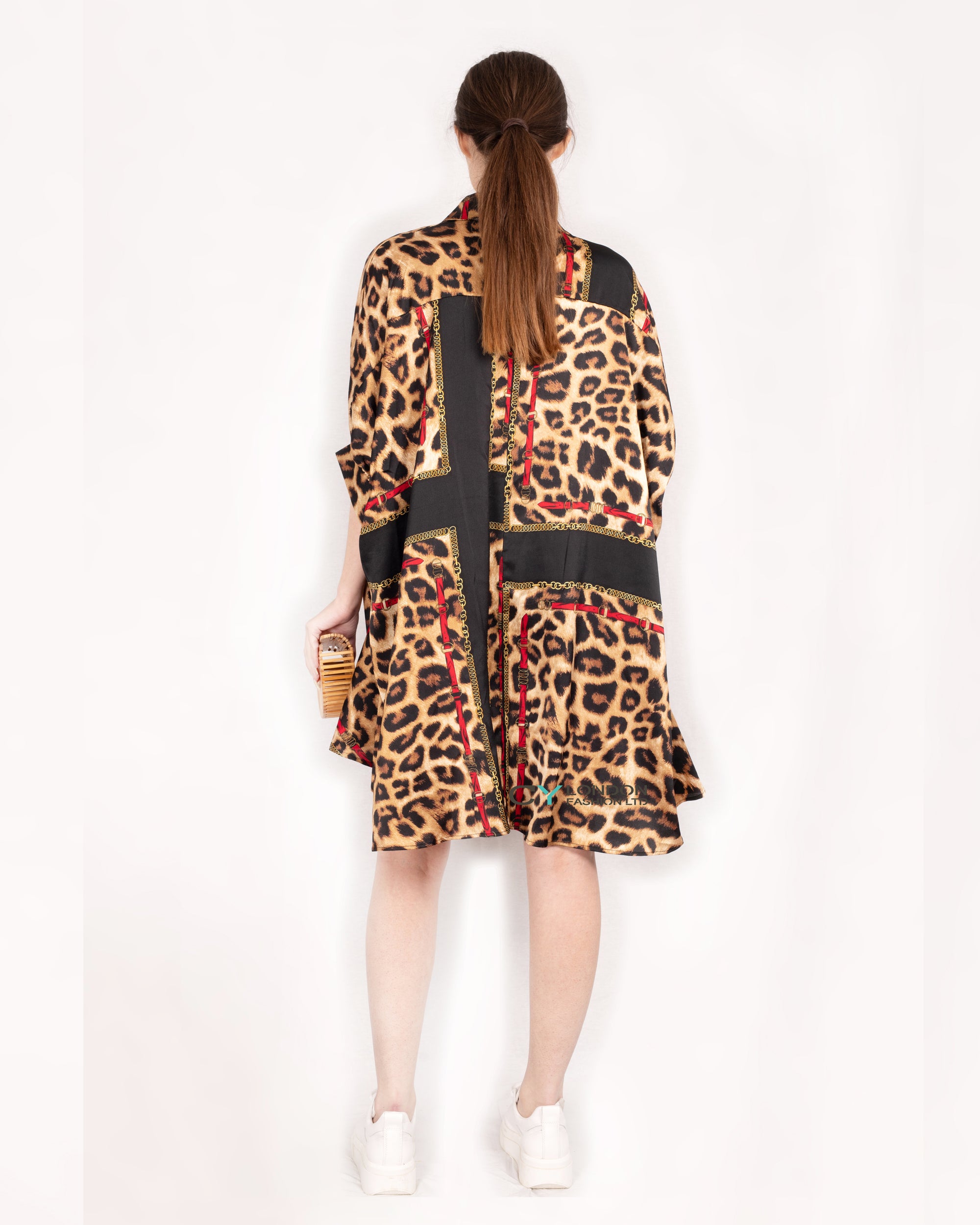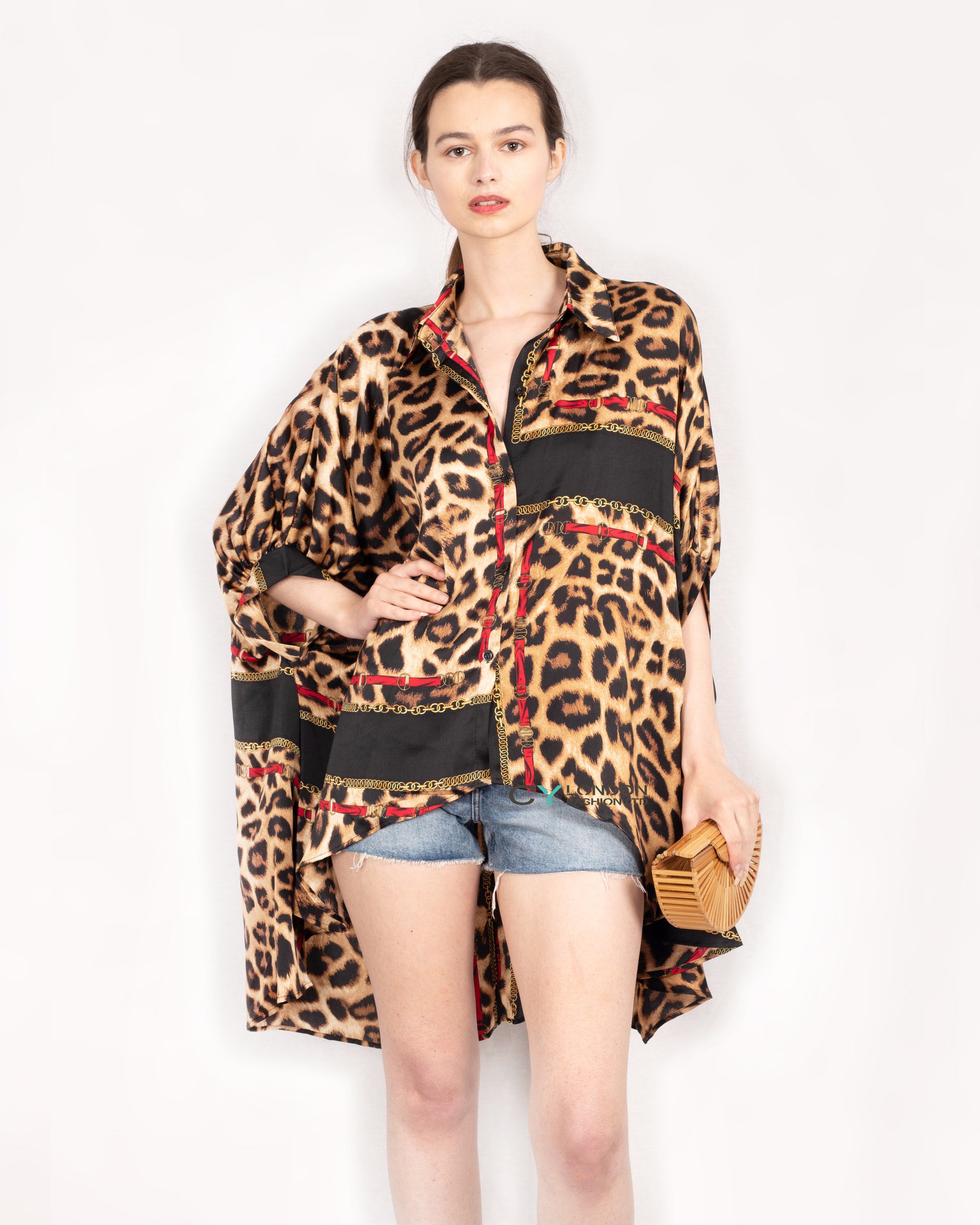 Silky Long Sleeve Shirt in Yellow Leopard Print